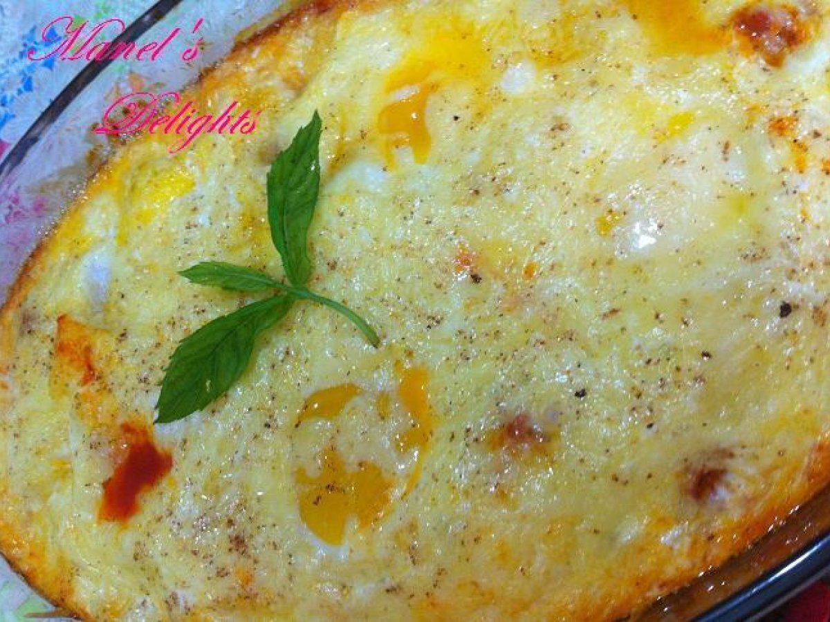 Gratin d'oeufs Platfacile45 min309 Kcal Envoyer cette recette à un ami Imprimer cette page Poser une question à l'auteur Publier votre photo de cette recette Ingrédients 5 5 oeufs 2 boîtes de tomates pelées (400g chacune) 1 boule de mozzarella (125g) coupée en fines lamelles (facultatif) 100 gr d’emmental coupé en fines lamelles 30 gr de parmesan râpé 1 oignon haché 1 gousse d’ail hachée 1 cc de sucre 1 cs de vinaigre de vin rouge (facultatif) huile d’olive romarin (facultatif) persil un cube de bouillon de poulet j'ai rajouté: 1/2 c.s de concentré de tomate 1 c.c de paprika noix de muscade Coût estimé: 6.84Euros€ (1.37€/part)