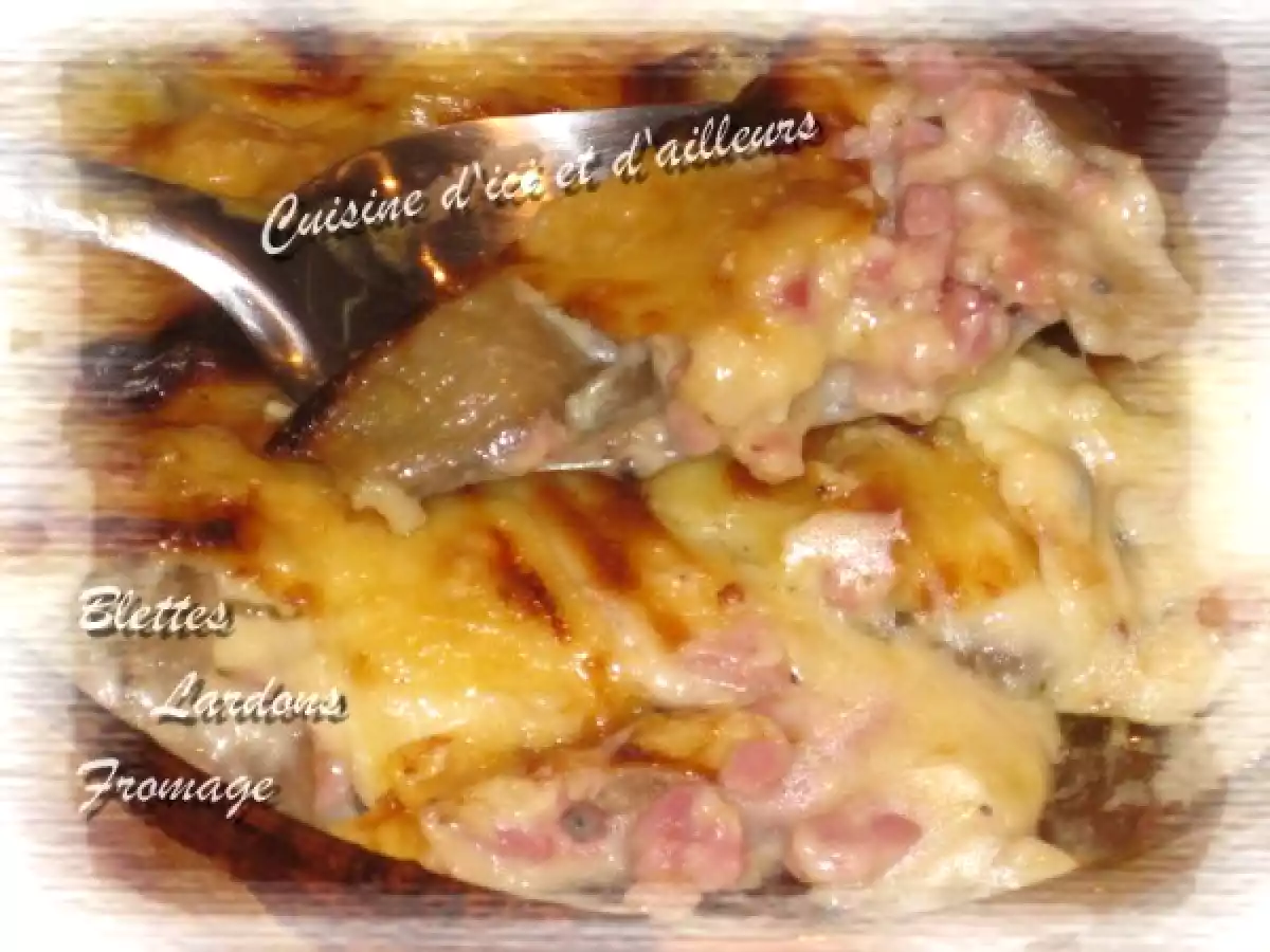 Gratin de blettes aux lardons votez maintenant PrécédentSuivant Platfacile30 min107 Kcal Envoyer cette recette à un ami Imprimer cette page Poser une question à l'auteur Publier votre photo de cette recette Ingrédients 4 1 botte de blettes 1 sachet de lardons Beurre Lait Sel poivre Coût estimé: 1.93Euros€ (0.48€/part)