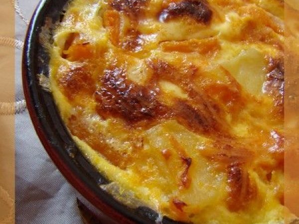 Gratin de citrouille et de pommes de terre PrécédentSuivant Platfacile45 min166 Kcal Envoyer cette recette à un ami Imprimer cette page Poser une question à l'auteur Publier votre photo de cette recette Ingrédients 6 750 g de pulpe de citrouille coupée en petits dés 2 pommes de terre coupées en petits dés 2 oignons finement hachés 3 oeufs 30 cl de lait 50 g de parmesan râpé sel poivre Coût estimé: 4.93Euros€ (0.82€/part)