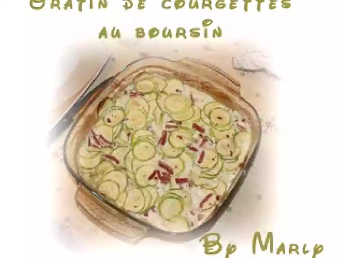 Gratin de courgettes au boursin Platfacile35 min Envoyer cette recette à un ami Imprimer cette page Poser une question à l'auteur Publier votre photo de cette recette Ingrédients 4 3 courgettes 1 paquet de Boursin cuisine ail & fines herbes 15 cl Crème fraîche liquide 3% 100 g de dés de bacon