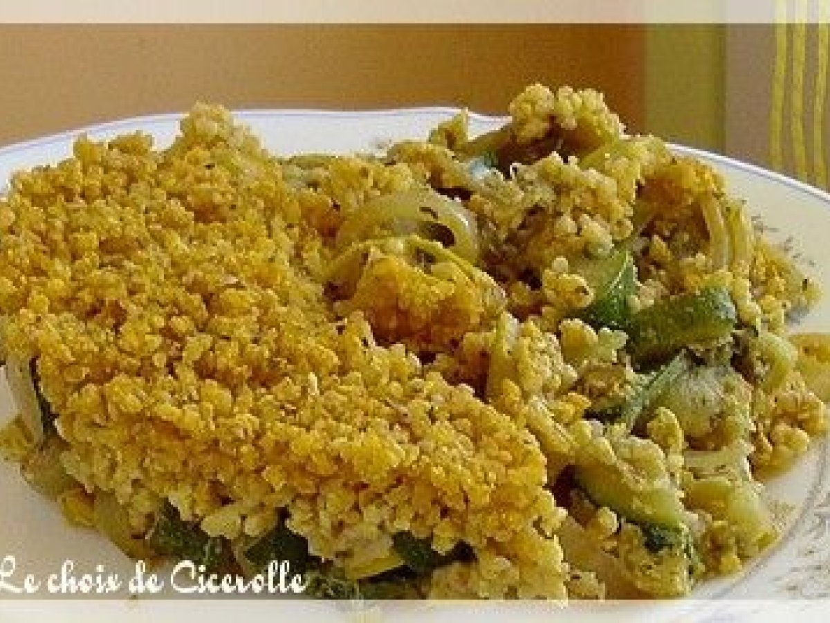 Gratin de courgettes en crumble épicé au boulghour