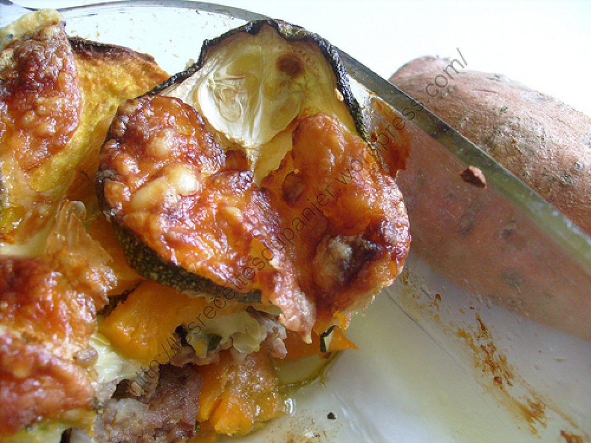 Gratin de courgettes, patates douces et viande hachée Platfacile2 h 25 m322 Kcal Envoyer cette recette à un ami Imprimer cette page Poser une question à l'auteur Publier votre photo de cette recette Ingrédients 8 1 kg de viande hachée 3 oignons 6 gousses d’ail 600 g de courgettes 400 g de patates douces du fromage de chèvre en tranches sel, poivre Coût estimé: 14.48Euros€ (1.81€/part)