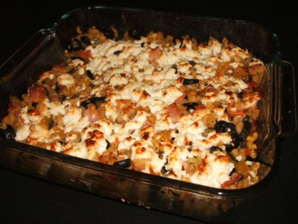 Gratin de pâtes aux courgettes, jambon, olives & feta Platfacile40 min620 Kcal Envoyer cette recette à un ami Imprimer cette page Poser une question à l'auteur Publier votre photo de cette recette Ingrédients 2 1 verre de coquillettes 1 courgette coupée en dés 2 tranches de jambon coupées en petits carrés une trentaine d'olives noires coupées en rondelles 200 g de feta émiettée 1 gousse d'ail hachée finement 1 tomate coupé en dés 1 cube de bouillon de volaille Coût estimé: 5.17Euros€ (2.58€/part)