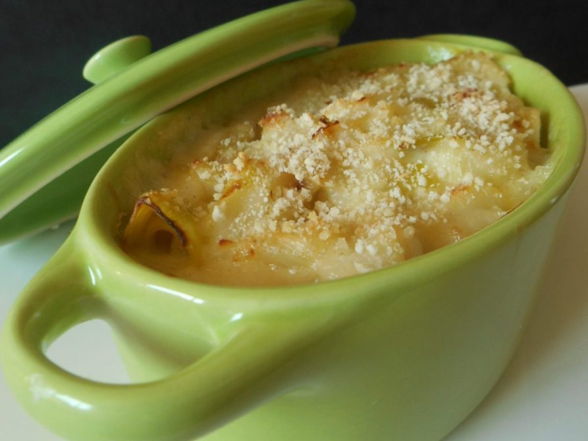 Des cocottes de poissons gratinés aux poireaux et à la sauce béchamel...