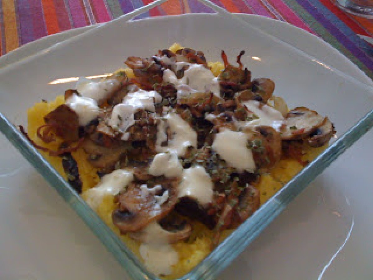 Gratin de polenta aux champignons votez maintenant Platfacile20 min Envoyer cette recette à un ami Imprimer cette page Poser une question à l'auteur Publier votre photo de cette recette Ingrédients 2 3 cuillères à soupe de polenta cuite 1 petite boîte de champignons de Paris 1 cuillère à café de cèpes 1 cuillère à café de crème fraîche 15% 1 cuillère à café de parmesan 30g de râpé de jambon fumé Persil, sel, poivre