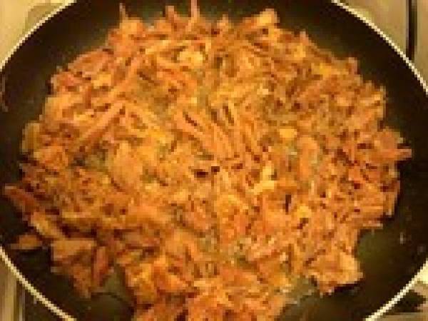 C'est un gratin bien doré, qui ouvre l'appétit mais n'a aucune tenue dans l'assiette à cause de la consistance des pommes de terre. Mais l'important c'est le goût! Les pommes de terre sont fondantes et c'est un régal!