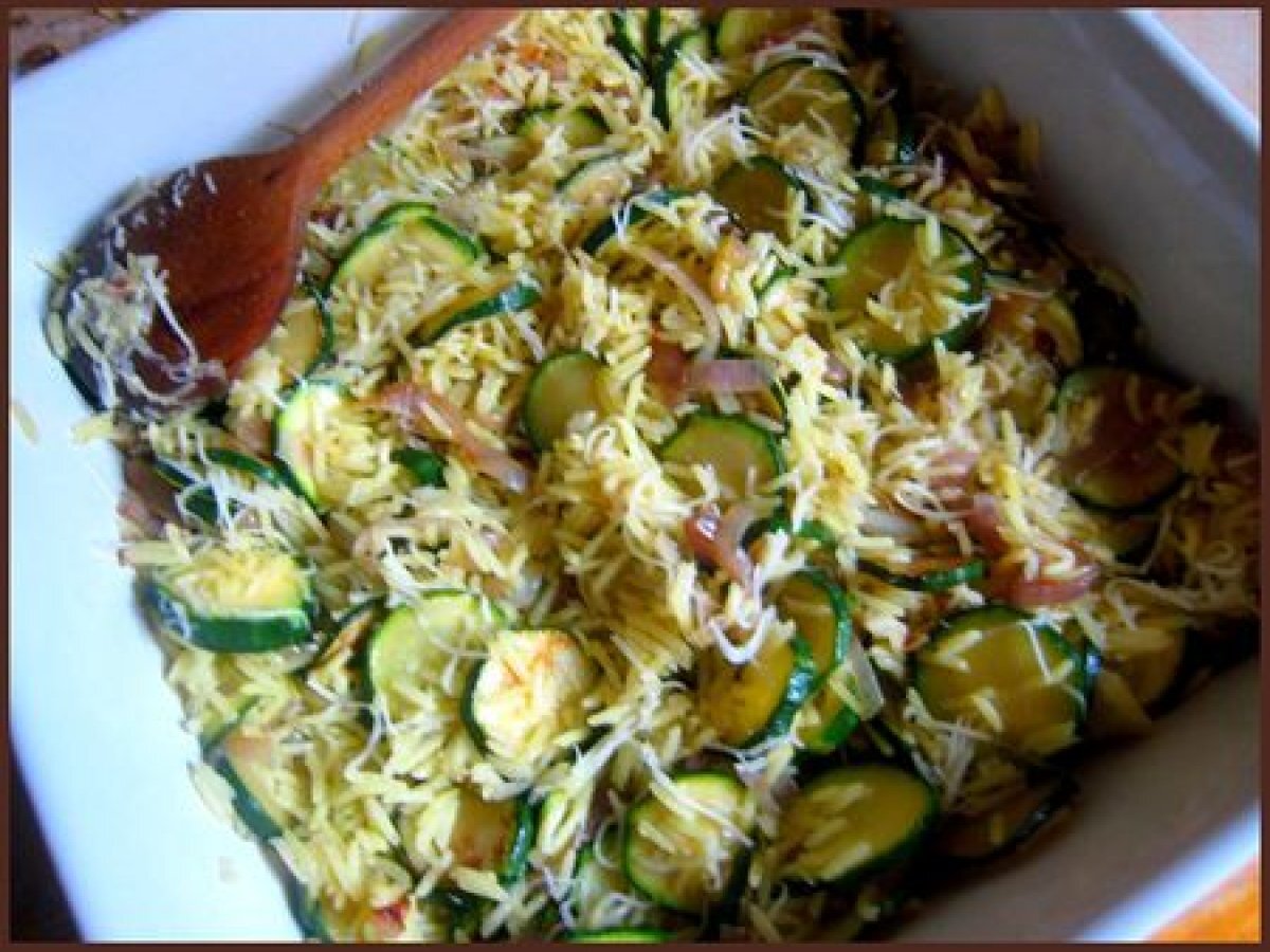 Gratin de riz safran aux courgettes Platfacile55 min293 Kcal Envoyer cette recette à un ami Imprimer cette page Poser une question à l'auteur Publier votre photo de cette recette Ingrédients 4 125 g de riz long 2 courgettes moyennes 4 oignons 1 gousse d'ail 100 g de comté râpé 1 cuillère à soupe d'huile d'olive 1 dose de safran Sel