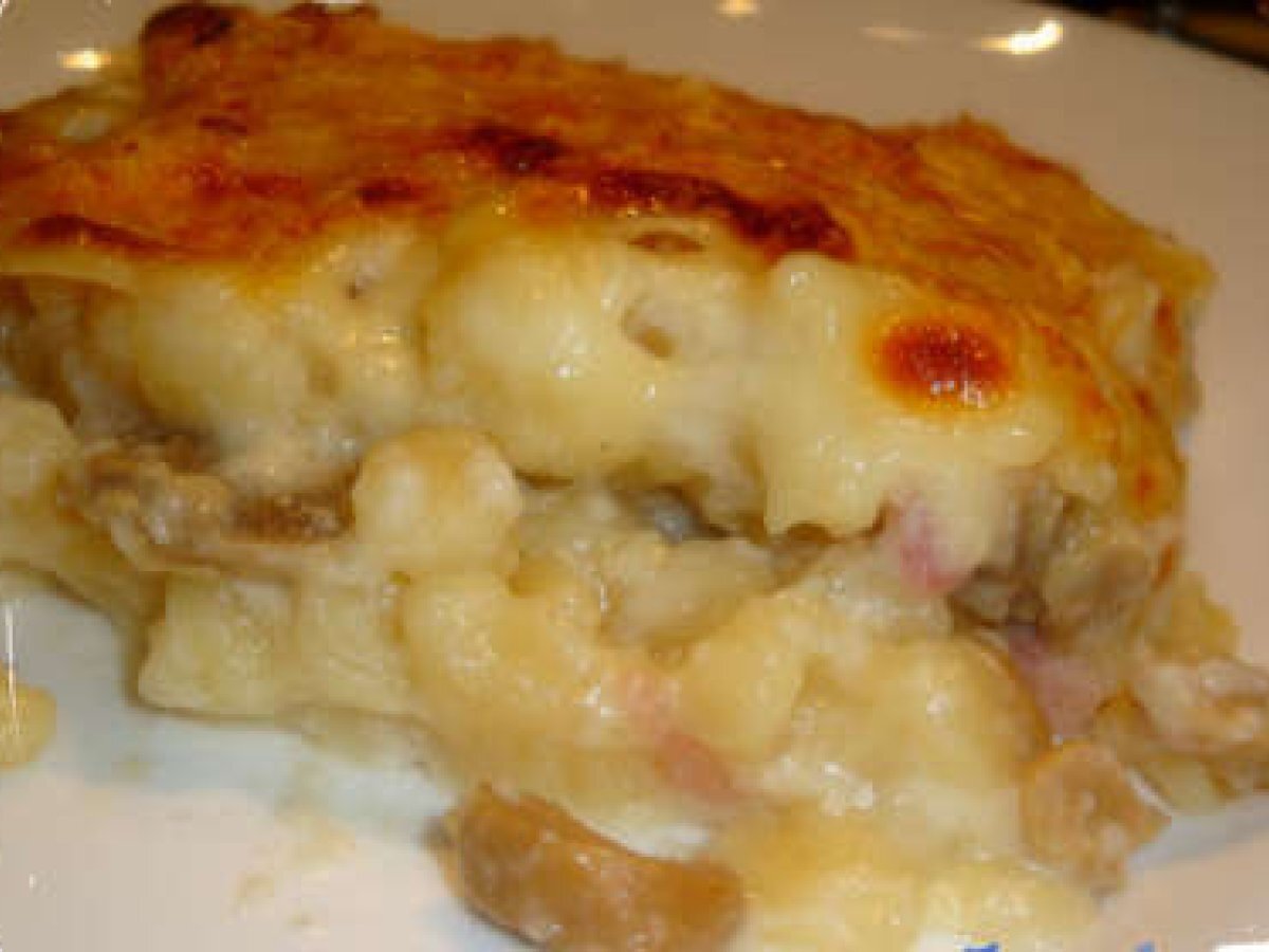 Gratin de spätzles Platmoyen1 h 20 m Envoyer cette recette à un ami Imprimer cette page Poser une question à l'auteur Publier votre photo de cette recette Ingrédients 2 Pour les spätzles : 200 g de farine 1 uf ½ cc de sel 110 ml deau ½ cube bouillon Pour le gratin : 100 g de lardons allumettes 1 petite boite de champignons émincés 50 g de gruyère râpé 2 cs de parmesan (facultatif) Pour la béchamel : 500 ml de lait demi-écrémé 3 cs de maïzena Sel, poivre & muscade