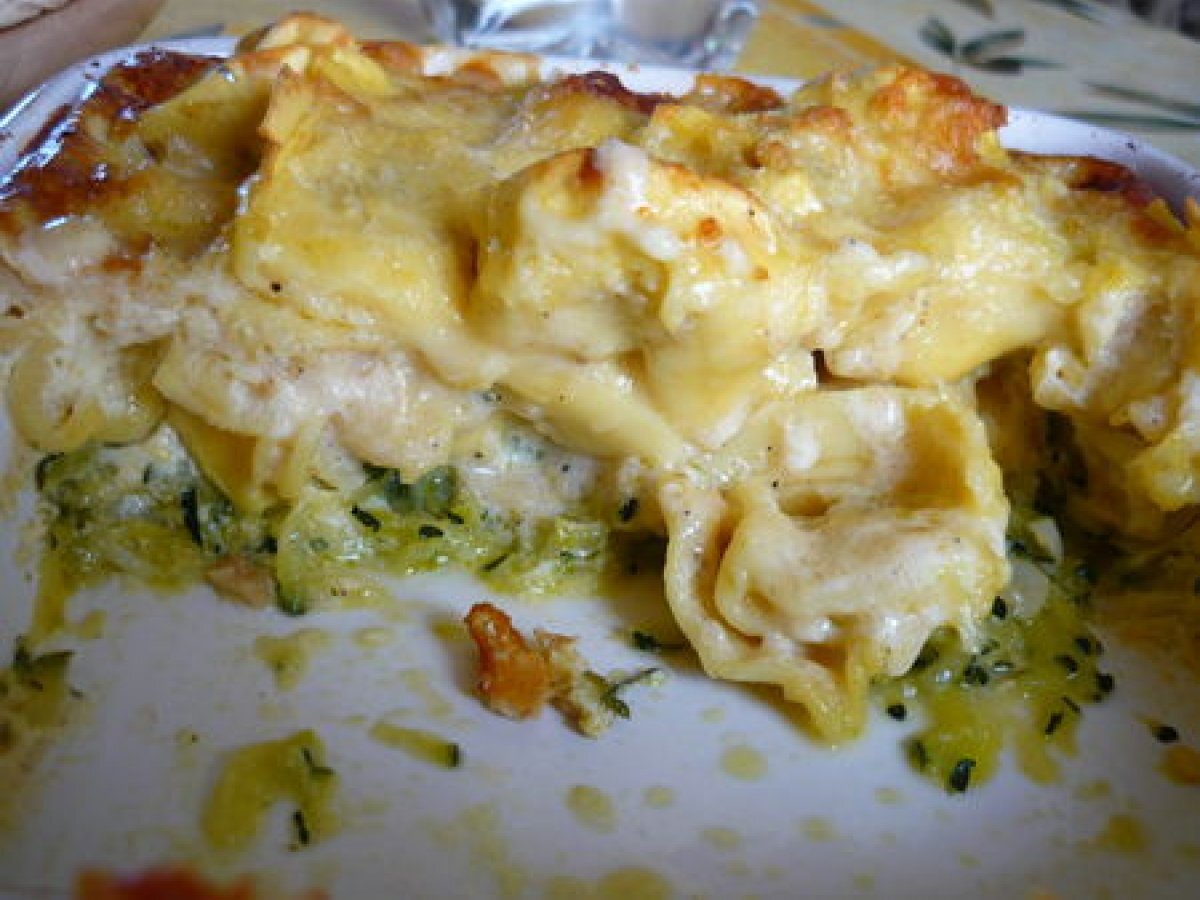 Gratin de tortellinis aux courgettes votez maintenant Platmoyen35 min Envoyer cette recette à un ami Imprimer cette page Poser une question à l'auteur Publier votre photo de cette recette Ingrédients 8 500 g de tortellinis 400 g de courgettes 2 gousses d'ail 3 oeufs 250 ml de lait 100 g de parmesan noix de muscade Cuire les tortellinis al dente.