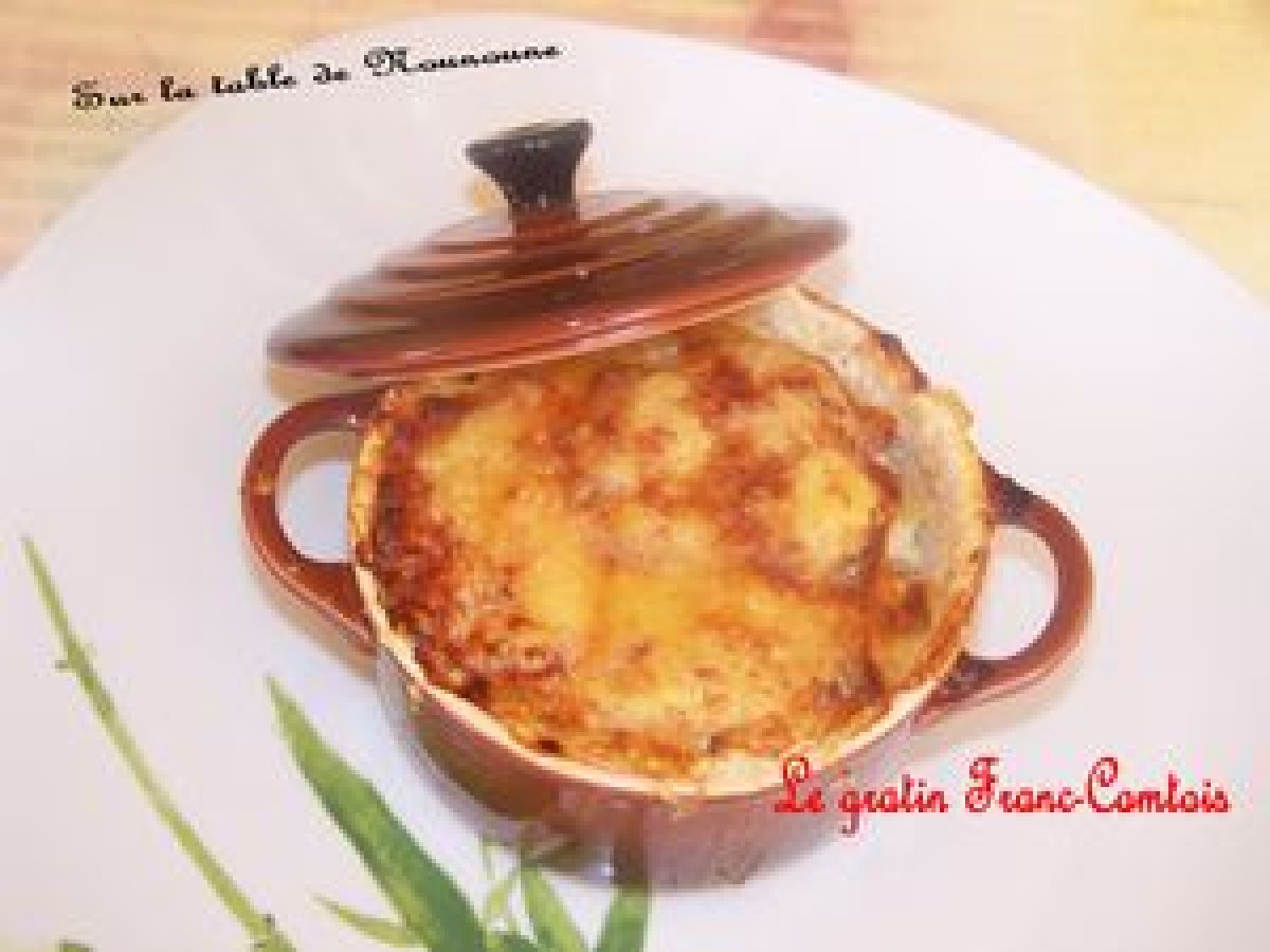Gratin franc comtois votez maintenant Platfacile42 min478 Kcal Envoyer cette recette à un ami Imprimer cette page Poser une question à l'auteur Publier votre photo de cette recette Ingrédients 6 6 pommes de terre 1 barquette de lardons fumés 1 saucisse de Montbéliard 30 cl de lait 30 cl de crème fraîche liquide 100 g de comté râpé 2 oignons muscade sel