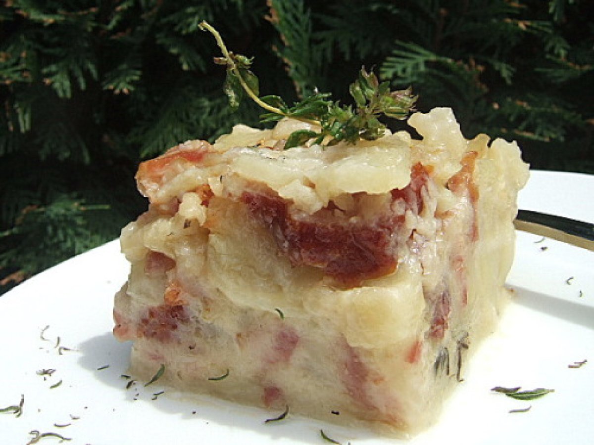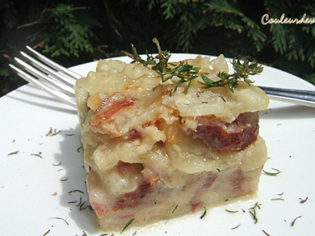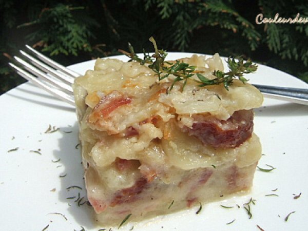 Gratin francomtois (au thermomix) PrécédentSuivant Platfacile40 min621 Kcal Envoyer cette recette à un ami Imprimer cette page Poser une question à l'auteur Publier votre photo de cette recette Ingrédients 6 1 kg de pommes de terre à gratin 3 saucisses de Montbéliard 2 gros oignons 2 gousses d’ail 1 cuillère à café de thym 1 bonne pincée de poivre 100 g de lardons fumés allumettes 1 cuillère à café bombée de moutarde 200 g de crème fraîche liquide 200 g de comté 50 g de vin blanc sec 1 cuillère à soupe de maïzena 800 g d’eau