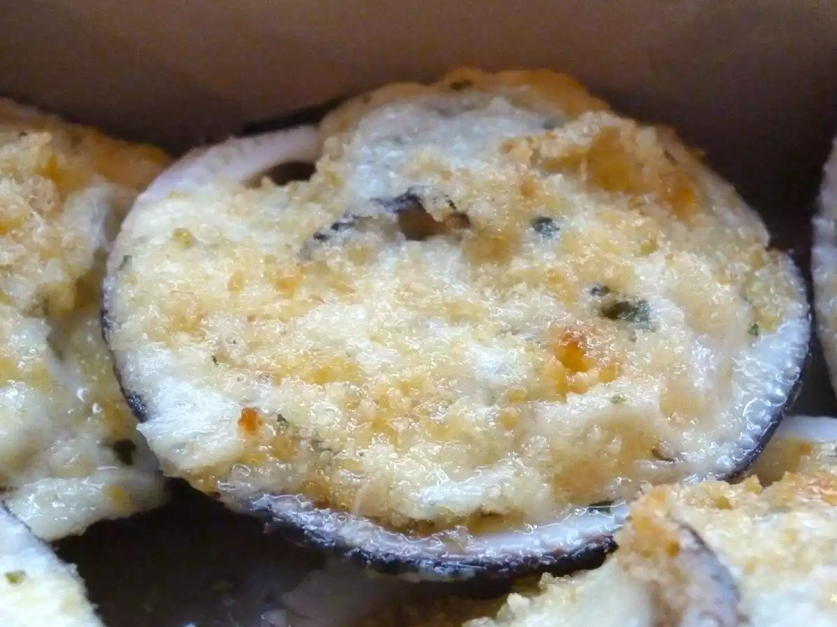 - une fois la sauce épaissie, vous pouvez soit en déposer une cuillère telle quelle sur chaque amande ou la mixer (si vous ne voulez pas de morceaux) avant de recouvrir les amandes de la sauce - - saupoudrez d'un peu de chapelure les amandes et les passez-les quelques minutes au four pour les réchauffer et quelques secondes sous le gril pour les faire dorer