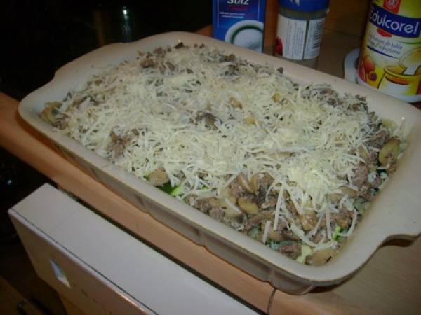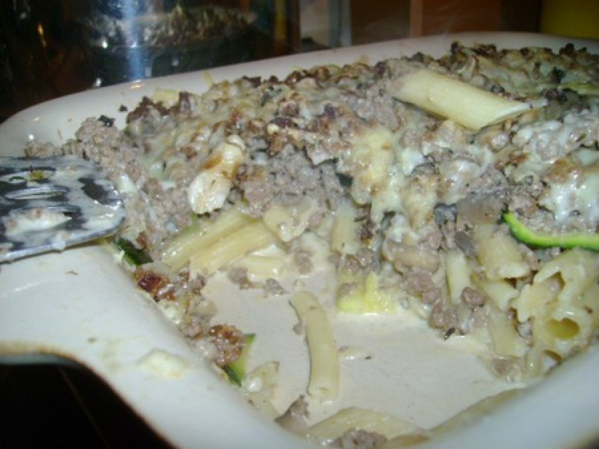 Gratins de pâtes aux hachis à la crème et courgettes