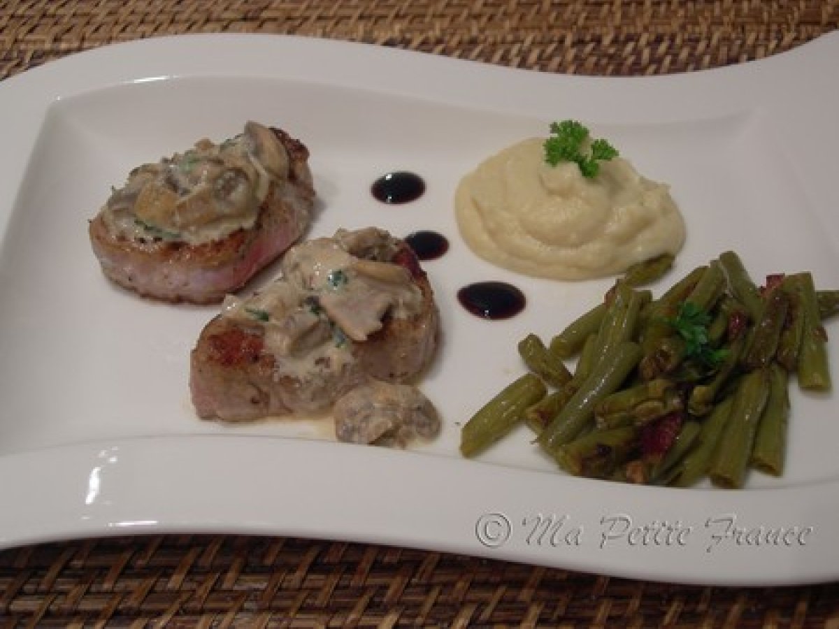 Grenadins de veau sauce cognac - purée de panais crémeuse au lait et haricots verts