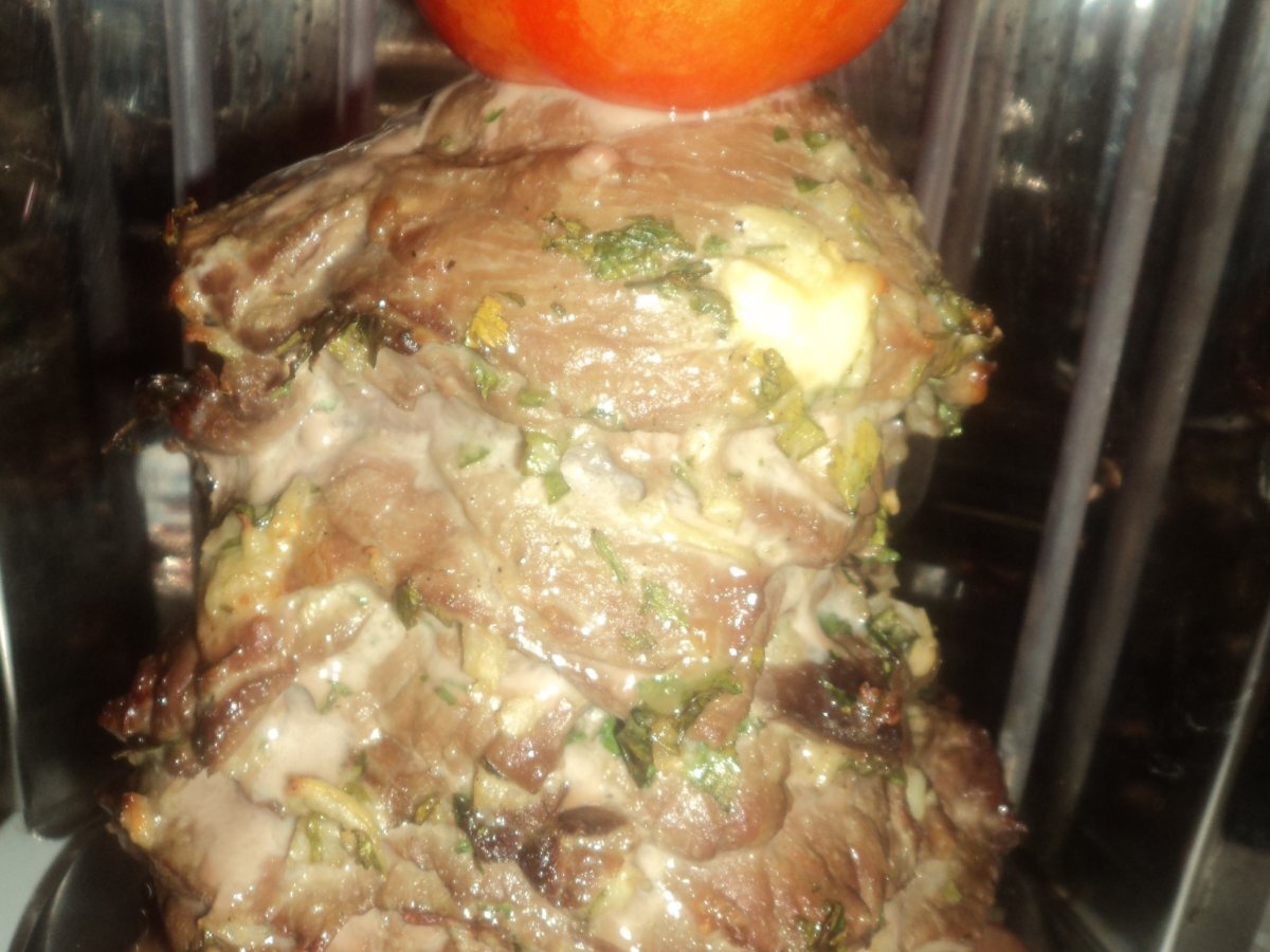 Grillade à la broche de faux filet (döner kebab,chawarma) PrécédentSuivant Platfacile30 min Envoyer cette recette à un ami Imprimer cette page Poser une question à l'auteur Publier votre photo de cette recette Ingrédients 5 Ingredient pour la marinade: 700 g de faux filet de viande 4 gousses d'ail 1 oignon 2 cs de persil pot de yaourt nature 2 c.à.s d'huile d'olive 1 c.à.s d'épice chawrama **** 2 c.à.s de crème de sésame (tahina) zel et poivre Pour l'accompagnement: 4 petit pain pita 3 tomates 1 salade 6 cuillerée à soupe sauce blanche Ingrédients pour la sauce blanche oriental: 1 petit concombre ( facultatif pour cette recette) 250 grammes de yaourt grecque (ou à défaut du fromage blanc) 1 gousses d'ail 1 cs de menthe fraiche 1 cc d'huile d'olive sel poivre du moulin