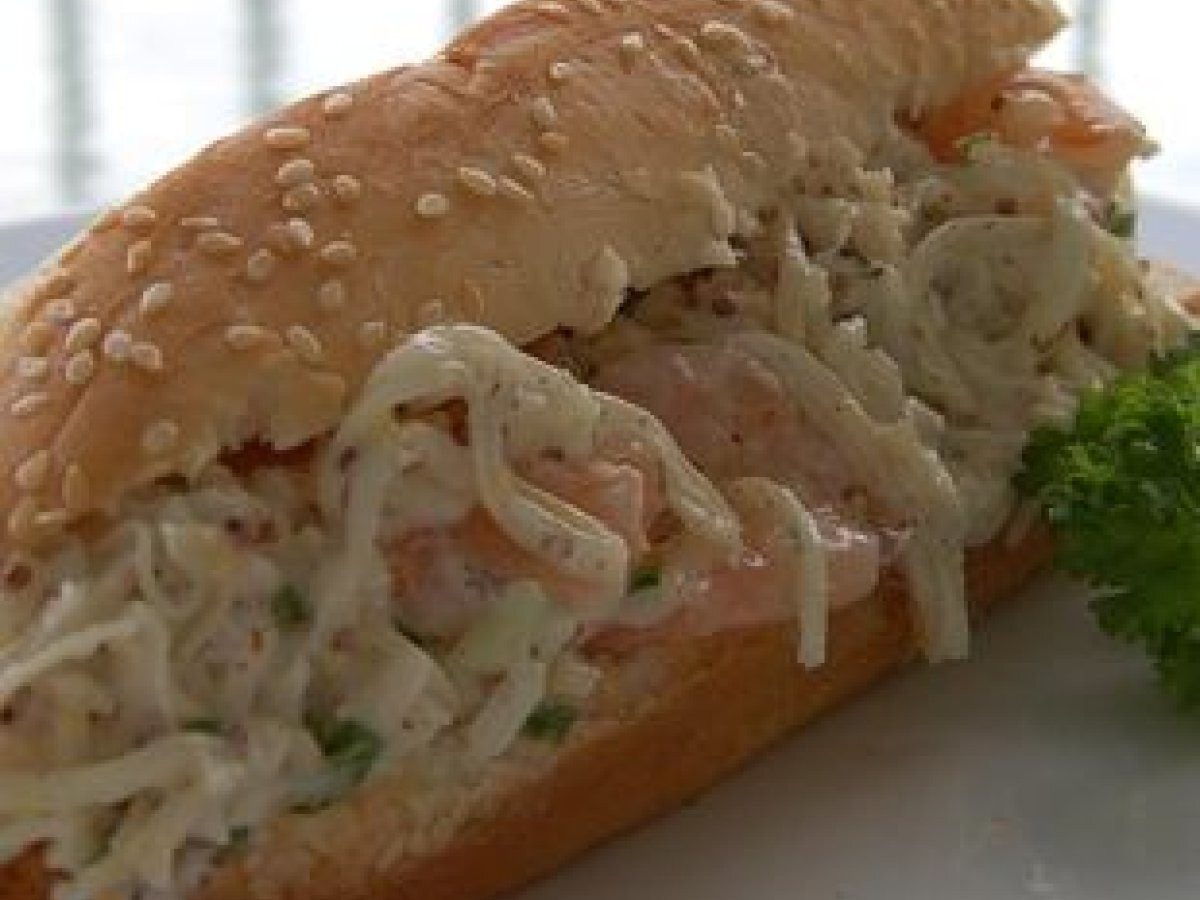 Guédilles aux crevettes et frites de patate douce