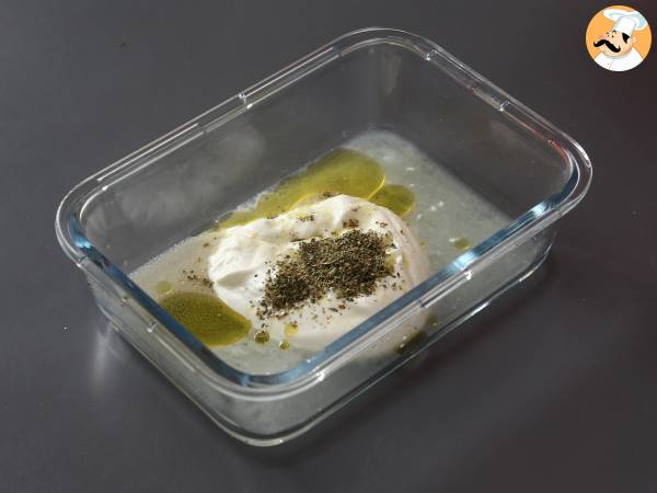 Dans une boite hermétique ou un sac congélation, mettre l'huile d'olive, le yaourt grec, le vinaigre de cidre, le jus de citron, l'ail, le sel, le poivre et l'origan.