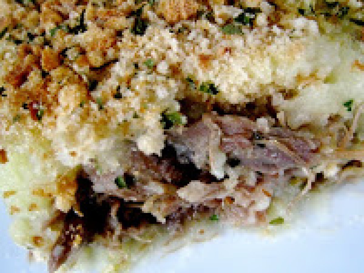 Hachis parmentier au confit de canard PrécédentSuivant Platfacile35 min571 Kcal Envoyer cette recette à un ami Imprimer cette page Poser une question à l'auteur Publier votre photo de cette recette Ingrédients 6 4 à 5 cuisses de canard confit 1 kilo de pomme de terre à purée 2 échalotes 1 carotte 50 g de beurre 10 cl de lait graisse de canard 1 botte de persil chapelure
