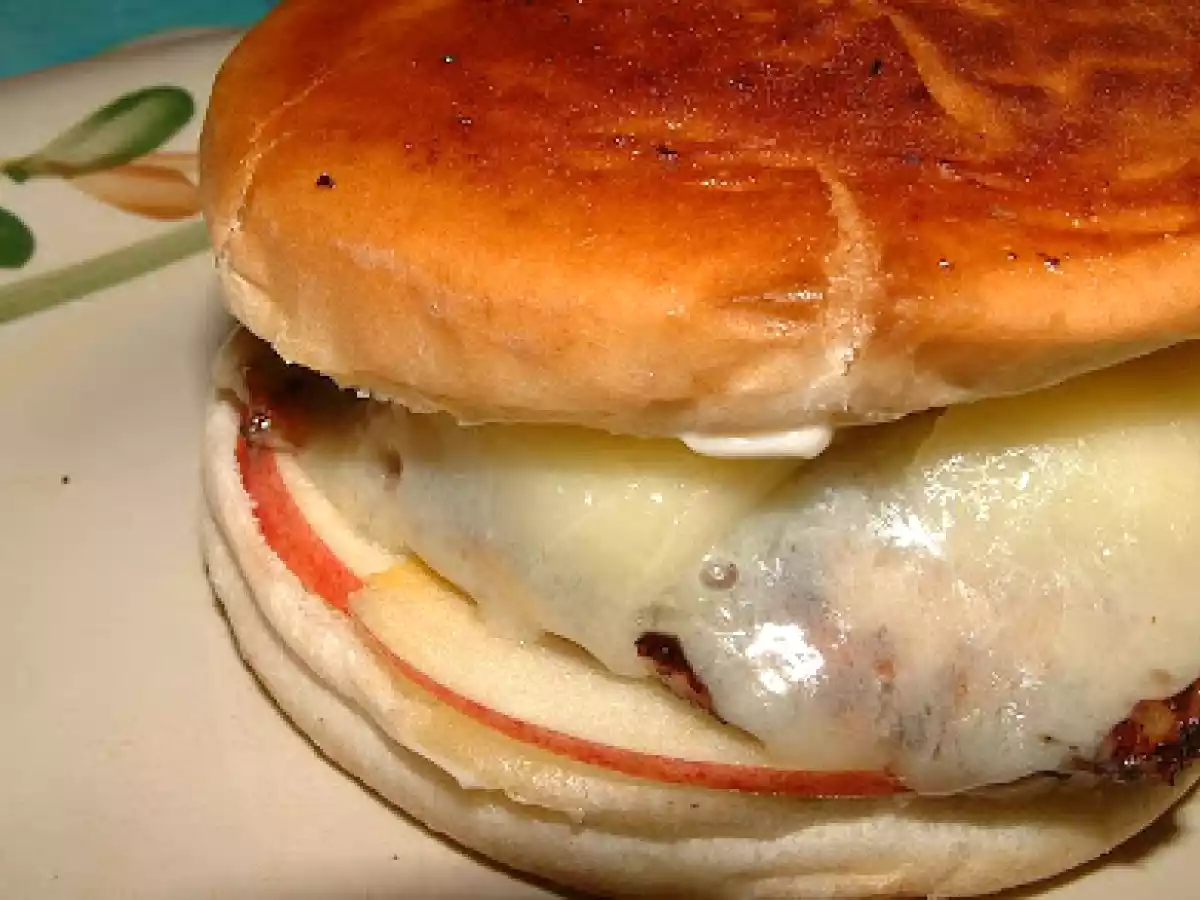 Hamburger au poulet Platfacile20 min Envoyer cette recette à un ami Imprimer cette page Poser une question à l'auteur Publier votre photo de cette recette Ingrédients 2 1 lb de poulet haché 4 pains hamburgers ½ pomme coupée en tranches fines 4 cuillères à tab. de moutarde de Dijon 4 cuillères à tab. de confiture de framboises Fromage suisse ou cheddar fort en tranches Mayonnaise Laitue