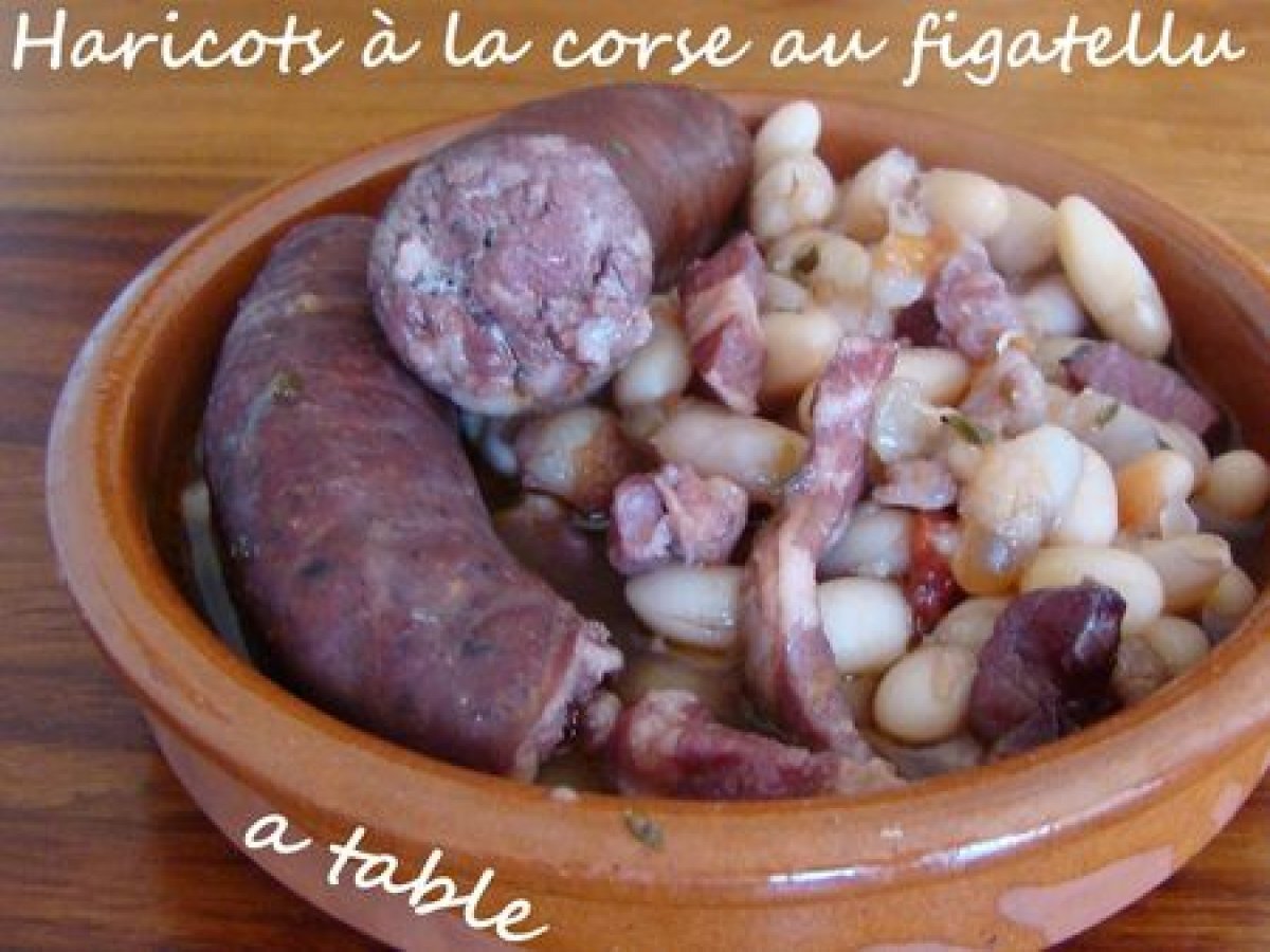 Haricots a la corse au figatellu Platfacile1 h 50 m Envoyer cette recette à un ami Imprimer cette page Poser une question à l'auteur Publier votre photo de cette recette Ingrédients 6 500 g de haricots blancs secs 200 g de lardons 1 figatellu 2 oignons 3 gousses d'ail 2 tomates mûres ou 1 boîte de tomates pelées 3 feuilles de laurier Thym 20 cl de vin rouge Huile d'olive Sel poivre