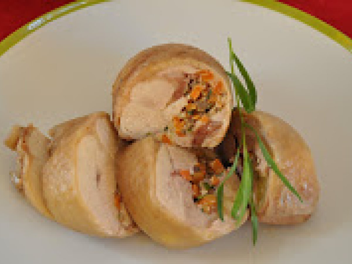 Hauts de cuisses de poulet, carottes champignons et estragon Platfacile45 min Envoyer cette recette à un ami Imprimer cette page Poser une question à l'auteur Publier votre photo de cette recette Ingrédients 4 2 hauts de cuisse de poulet assez gros et avec la peau une carotte un demi-oignon 50 g de champignons de Paris 4 tiges d'estragon frais 4 tiges de persil 15 g de fromage Comté râpé 15 g de noix de Grenoble une cuillère à soupe de crème fraîche épaisse la moitié d'un oeuf sel poivre noix de muscade Pour la sauce : 100 g de crème fraiche liquide 4 cuillères à soupe de jus de poulet recueilli après sa cuisson l'autre demi-oignon ciselé deux cuillères à soupe de vin jaune ou de Noily Prat 25 g de noix de Grenoble Pour accompagner : du quinoa cuit un peu de duxelles de carottes d'oignons de courgettes