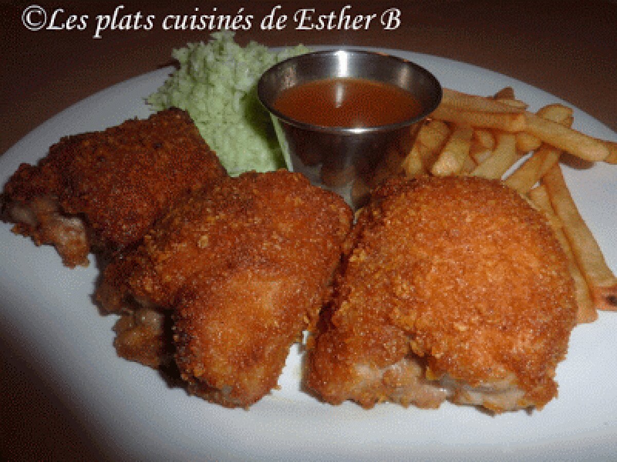 Hauts de cuisses de poulet croustillant PrécédentSuivant Platfacile30 min1203 Kcal Envoyer cette recette à un ami Imprimer cette page Poser une question à l'auteur Publier votre photo de cette recette Ingrédients 3 8 hauts de cuisses de poulet, sans la peau 3 onces de mayonnaise ¼ tasse de moutarde de Dijon 2 cuillères à soupe d'assaisonnement barbecue 1½ tasse de flocons de maïs, écrasés finement 1 cuillère à soupe d'huile d'olive Sel poivre Coût estimé: 8.18Euros€ (2.73€/part)