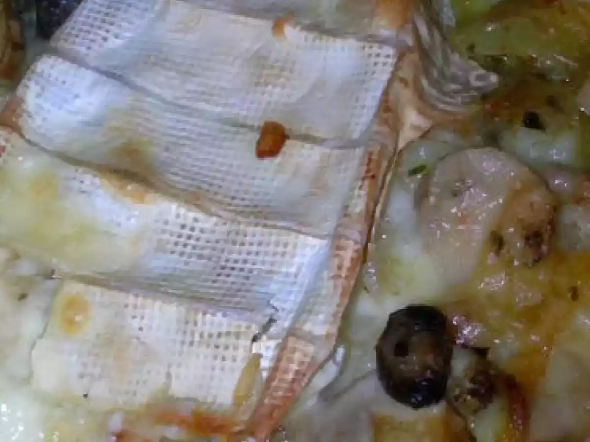 - Pendant ce temps, coupez le caprice des dieux en deux et déposez le dessous dans un plat allant au four, versez dessus le mélange pommes de terre et champignons et remettez dessus le chapeau du fromage (croûte au-dessus).