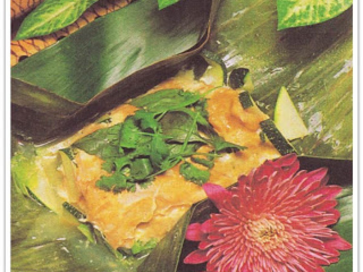 Hor mok ou flan de poisson au curry rouge dans sa feuille de bananier Platfacile50 min Envoyer cette recette à un ami Imprimer cette page Poser une question à l'auteur Publier votre photo de cette recette Ingrédients 4 500 g de poisson à chair ferme comme le bar ou le loup de mer Marinade : 4 cuillères à soupe de pâte de curry rouge 230 ml de lait de coco 2 jaunes d'oeufs 2 cuillères à soupe de sauce poisson (nam plaa ou nuoc nam) 2 cuillères à soupe d'amidon de riz ou fécule de pomme de terre Une poignée de laitue 1 petite courgette 2 grandes feuilles de bananier 1 botte de basilic (de préférence thaï) frais 1 botte de coriandre