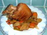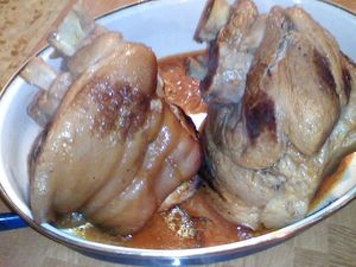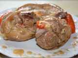 - Dans un fait-tout en fonte de préférence, faites chauffer un peu d'huile et faites revenir 5 minutes sur toutes le face les jarrets avec l'oignon coupé en morceaux.