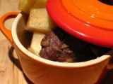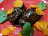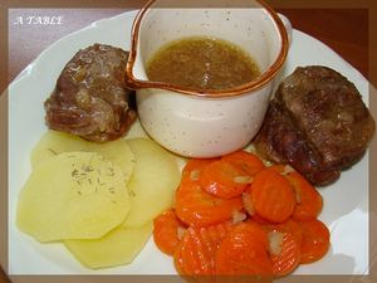 Quel mélange de saveurs. Miam, assiette appétissante à souhait, c'est bon la viande mijotée ... Et les carottes glacées au miel, quel délice!