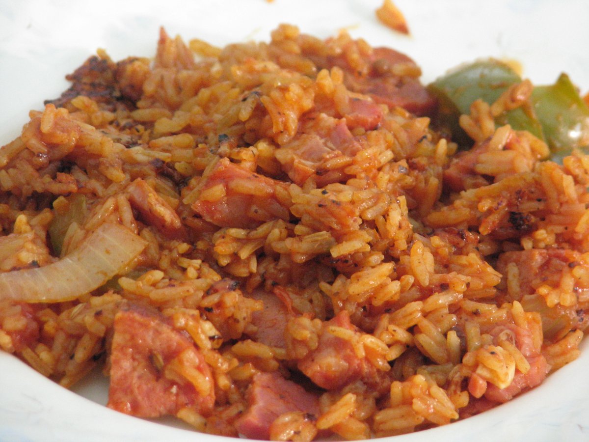- Faire revenir le jambon coupé en cubes et la saucisse (cuite préalablement) dans 1 cs d'huile.