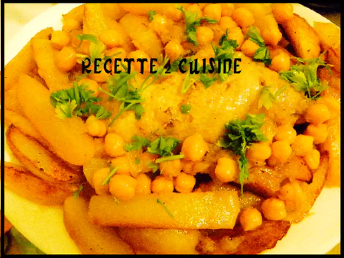 - Lorsque le poulet est cuit et la sauce est réduite, versez les frites dans la sauce et laissez sur le feu 10 minutes encore.