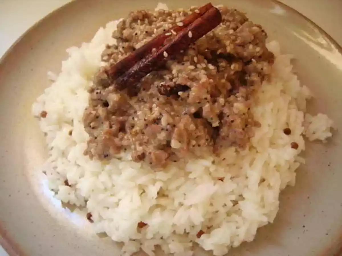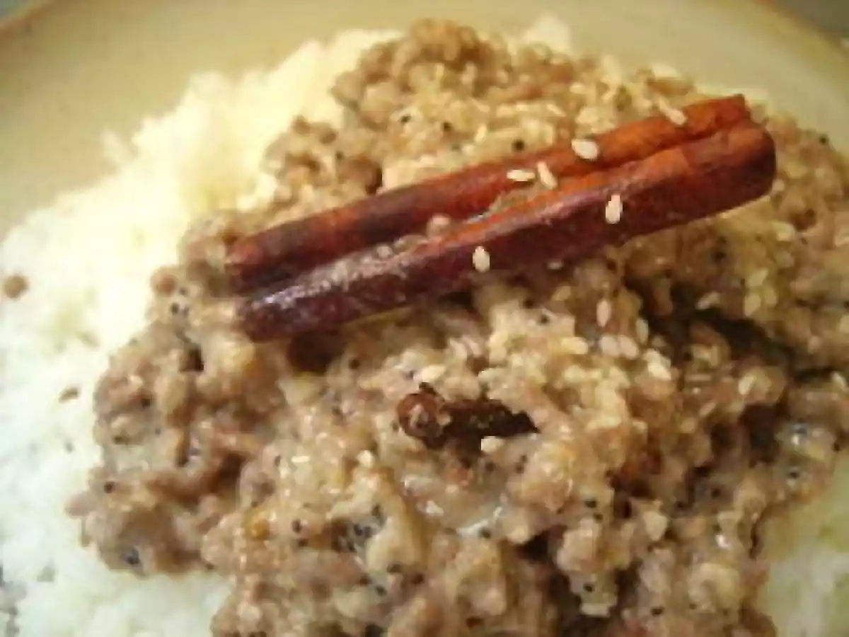 Korma de boeuf PrécédentSuivant Platfacile1 heure Envoyer cette recette à un ami Imprimer cette page Poser une question à l'auteur Publier votre photo de cette recette Une super recette épatante et délicieuse. Ingrédients 3 350 g de boeuf haché 1 oignon coupé en lamelles 2 gousses d'ail coupées en rondelles 1 morceau de gingembre frais de 2 cm de long 1 cuillère à café de graines de sésame blanc 1 cuillère à café de graines de pavot noir 1 cuillère à soupe d'amandes effilées 2 cuillères à soupe d'huile ou de ghee (beurre clarifié) 4 gousses de cardamome verte 3 clous de girofle 1 bâton de cannelle 1 cuillère à café de cumin en poudre 1 cuillère à café de coriandre en poudre 150 ml de crème fraîche (que l'on peut remplacer par de la crème de coco) ajoutée à 1 cuillère à soupe de maïzena sel