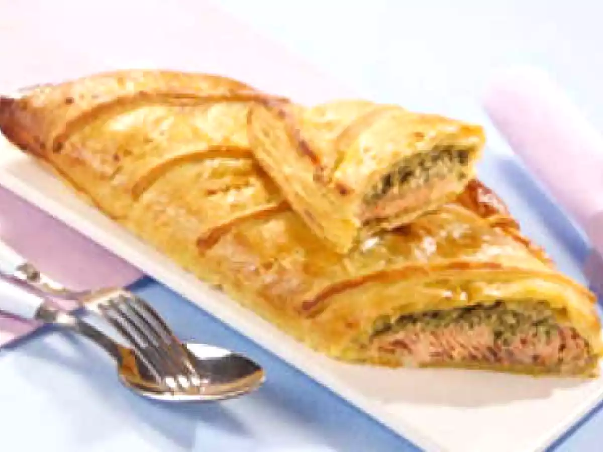Koulibiac de saumon à l'aneth PlatDifficile1 h 20 m Envoyer cette recette à un ami Imprimer cette page Poser une question à l'auteur Publier votre photo de cette recette Ingrédients 6 1 pâte Feuilletée 1 sachet de Court Bouillon au Vin Blanc 300 g yaourts nature brassé 600 g de saumon frais 1 uf 200 g de champignons de Paris 1 petit bouquet d'aneth 1 oignon ½ citron 100 g de riz 10 g de beurre 2 cuillerées à soupe d'huile Sel, poivre