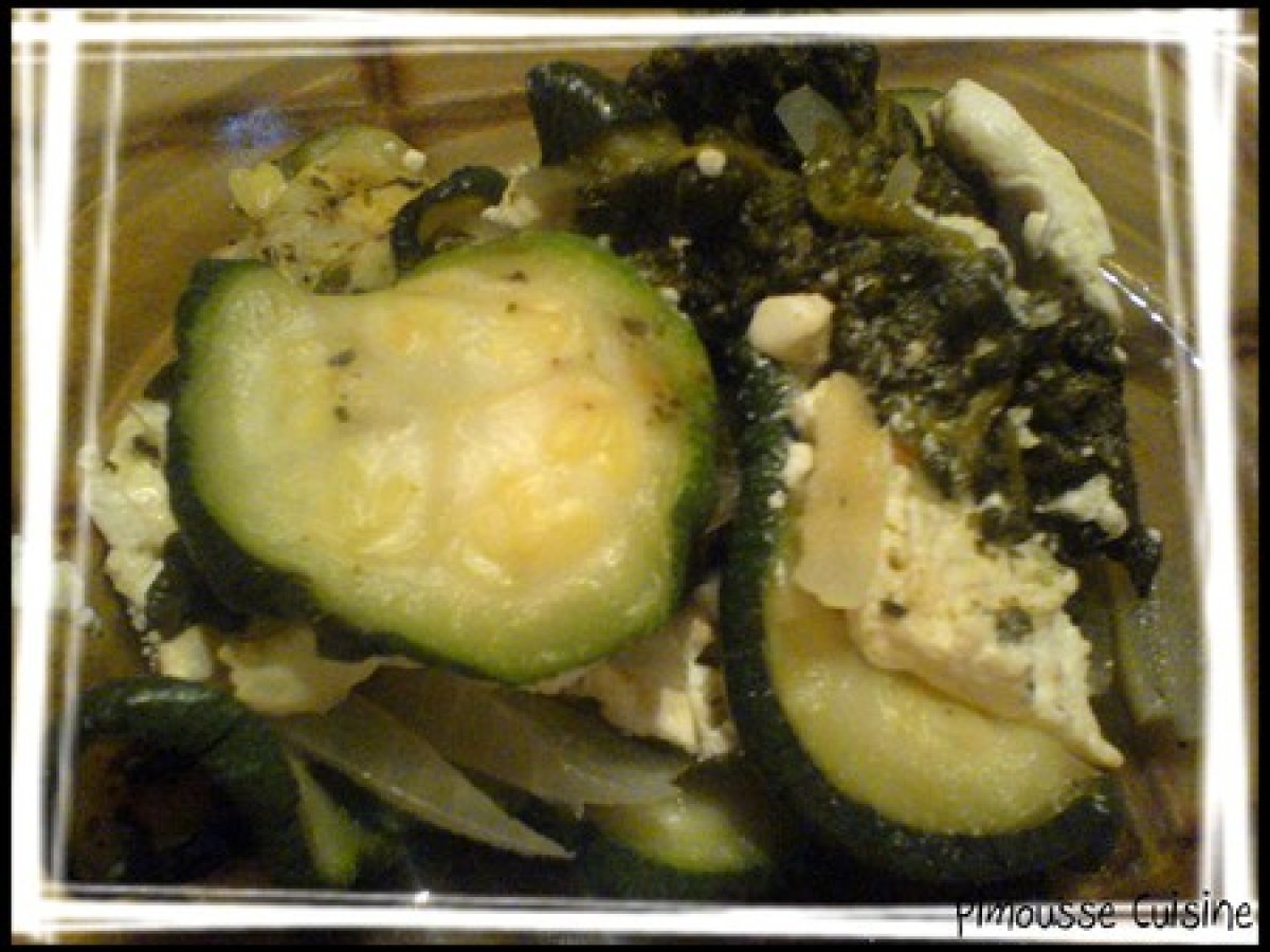 L'espèce de gratin courgettes, épinards, chèvre frais
