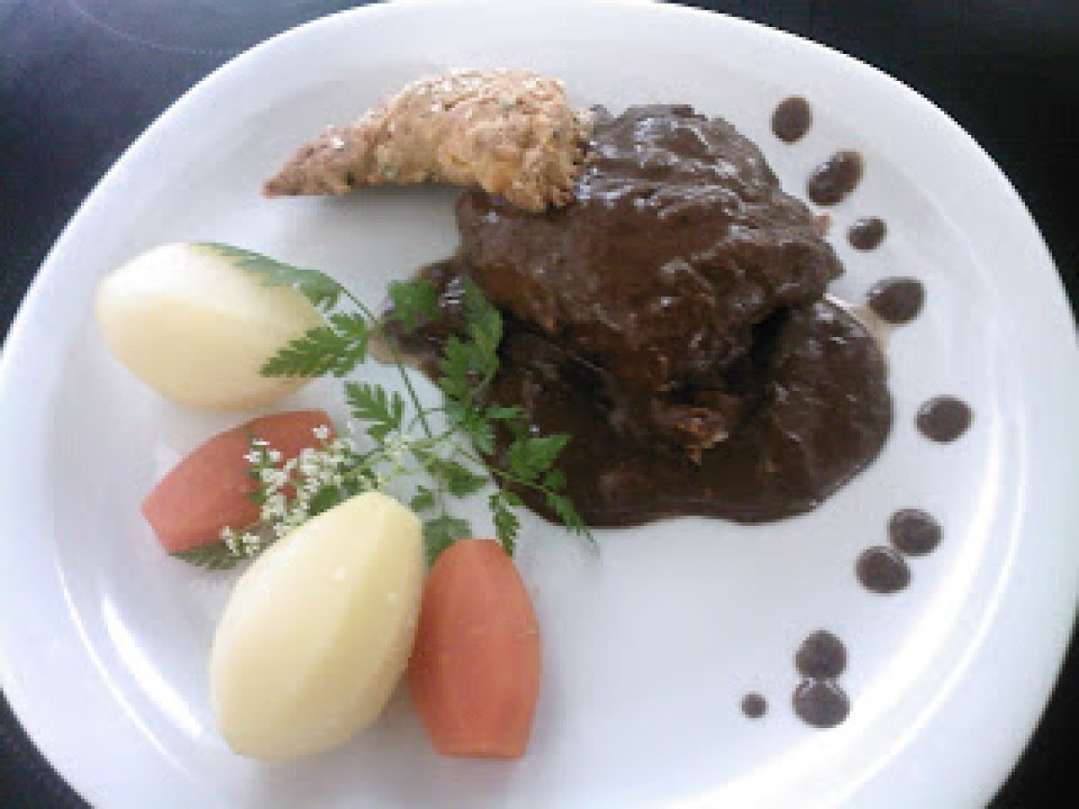 La daube de truite au vin et chocolat votez maintenant Platfacile25 min437 Kcal Envoyer cette recette à un ami Imprimer cette page Poser une question à l'auteur Publier votre photo de cette recette Ingrédients 4 700 g de filets de truite assez épais 25 cl de vin rouge 2 têtes d'échalotte 1 gousse d’ail 1 feuille de laurier 1 carotte 1 oignon 100 g de chocolat noir à 70 % de cacao au moins sel poivre huile