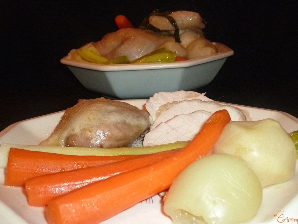 - épluchez et nettoyez tous les légumes, laissez-les entiers si possible s'ils ne sont pas trop gros et ajoutez-les dans la cocotte une heure et demie après le début de la cuisson de la poule