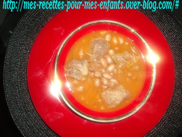 La recette d' haricots marbré à l'agneau de ma maman Platfacile1 h 15 m Envoyer cette recette à un ami Imprimer cette page Poser une question à l'auteur Publier votre photo de cette recette Ingrédients 6 900 g de viande d'agneau coupé en petit morceaux 500 g d haricots marbré 2 oignons coupé en fine lamelles 4 gousses d'ail écrasé 12 tomates fraîche pelées épépinées mixé en colis 5 cuillère à soupe de persil haché frais 5 cuillère à soupe de coriandre haché frais 2 cs dhuile d'olive 1 cuillère à café de pistil de safran 2 cuillères à café paprikas 1 cuillère à café de cumin 1 bouquet garnie Sel et poivre *** 2 pincés de piment d'Espelette (facultatif)