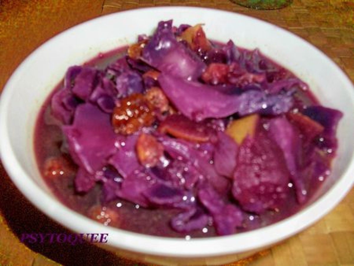 La soupe au chou...rouge Platfacile1 h 11 m Envoyer cette recette à un ami Imprimer cette page Poser une question à l'auteur Publier votre photo de cette recette Ingrédients 2 1 demi chou rouge de taille moyenne 1 ou 2 cubes de bouillon de légumes ou de volaille 50 gr de raisins secs ( une bonne poignée) 2 pommes golden 1 oignon 100 ml de vin blanc 1 Cuillère à Soupe bombée de beurre
