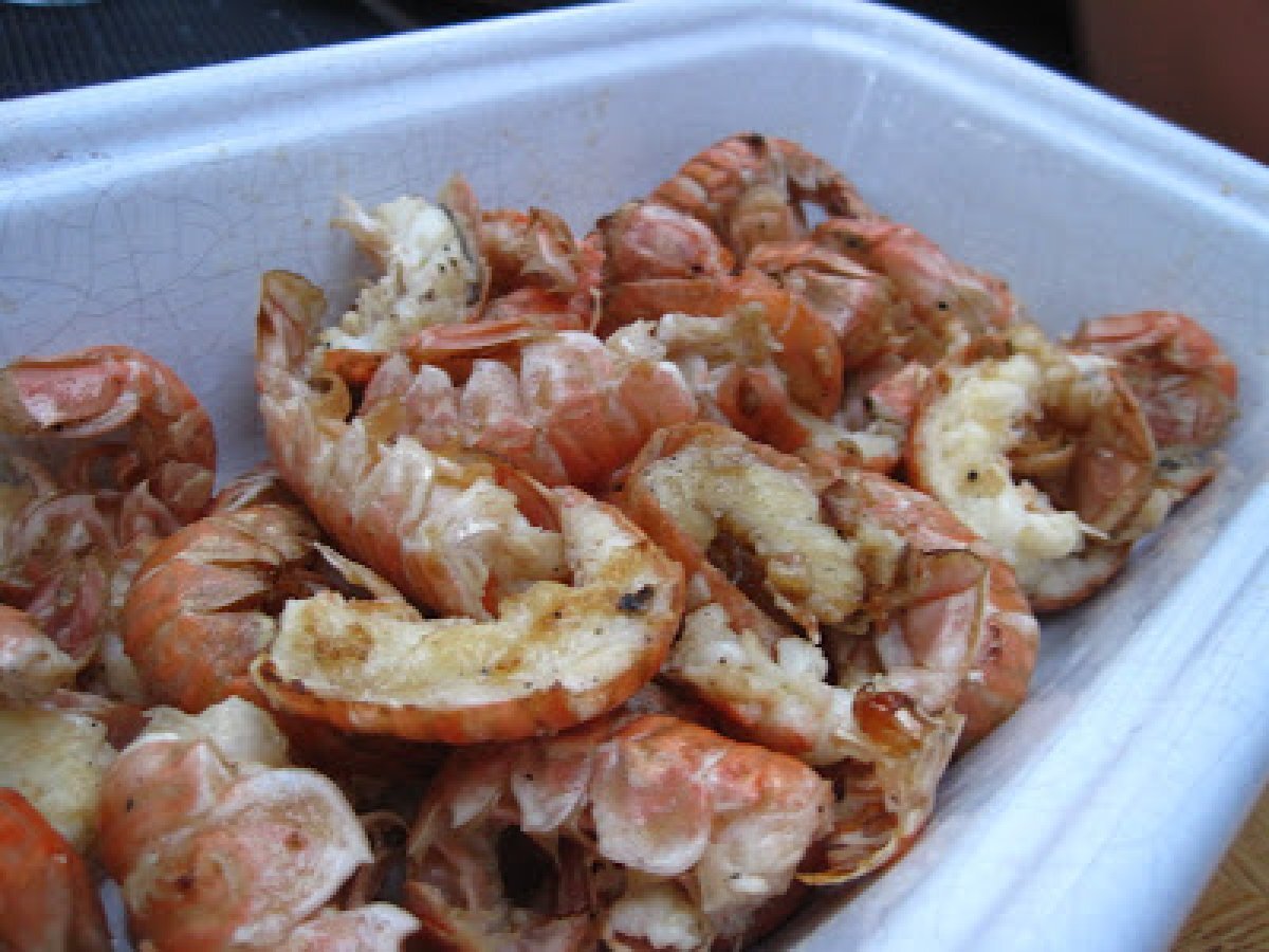 - Ôtez les têtes des langoustines crues (facultatif) et coupez les queues en 2 dans le sens de la longueur.