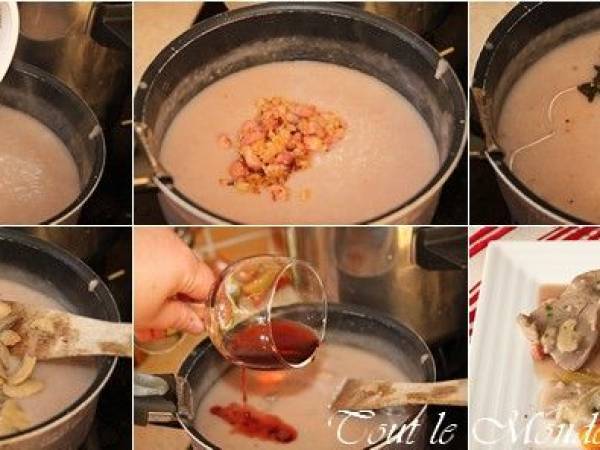 Langue de boeuf sauce madère aux champignons Platfacile1 h 30 m Envoyer cette recette à un ami Imprimer cette page Poser une question à l'auteur Publier votre photo de cette recette Ingrédients 6 Pour la langue : 1 langue de boeuf 10 carottes 3 poireaux 3 navets 1 oignons 4 clous de girofles 1 bouquet garni 6 pommes de terre 1 grand verre de vinaigre Sauce madère aux champignons : 50 g de beurre 60 g de farine 50 g d'oignons 50 g de lard fumé poivre sel 70 cl de bouillon de volaille 3 cl de madère 300 g de champignons de Paris frais ou 1 grosse boite de champignons émincés