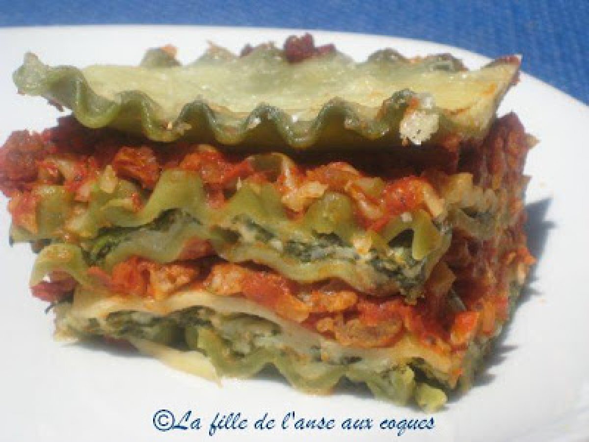 Lasagne à la saucisse, aux épinards et au fromage votez maintenant Platfacile1 heure Envoyer cette recette à un ami Imprimer cette page Poser une question à l'auteur Publier votre photo de cette recette Ingrédients 8 12 onces (375 g g) de saucisses italiennes, la peau enlevée (environ 4 saucisses) 1 oignon haché 4 gousses d'ail hachées finement 1 poivron rouge épépiné et coupé en dés 1 branche de céleri, hachée 1 boîte (798 ml) de tomates italiennes broyées + 1 tasse (250 ml) de tomates entières passées au robot culinaire) 2 cuillères à soupe (30 ml) de pâte de tomates ½ t (125 ml) de tomates séchées, hachées 1 cuillère à thé (5 ml) basilic séché 1 cuillère à thé (5 ml) d'origan séché 16 pâtes à lasagne 1 paquet (300 g) d'épinards surgelés, décongelés 1 contenant de (500 g) de fromage ricotta 1 tasse (250 ml) de parmesan fraîchement râpé 2 ½ t (375 ml) de fromage mozzarella râpé 1 oeuf ½ cuillère à thé (2 ml) de sel ½ cuillère à thé (2 ml) de poivre noir du moulin 1 cuillère à thé (5 ml) piment d'Espelette