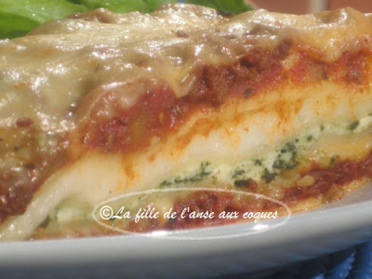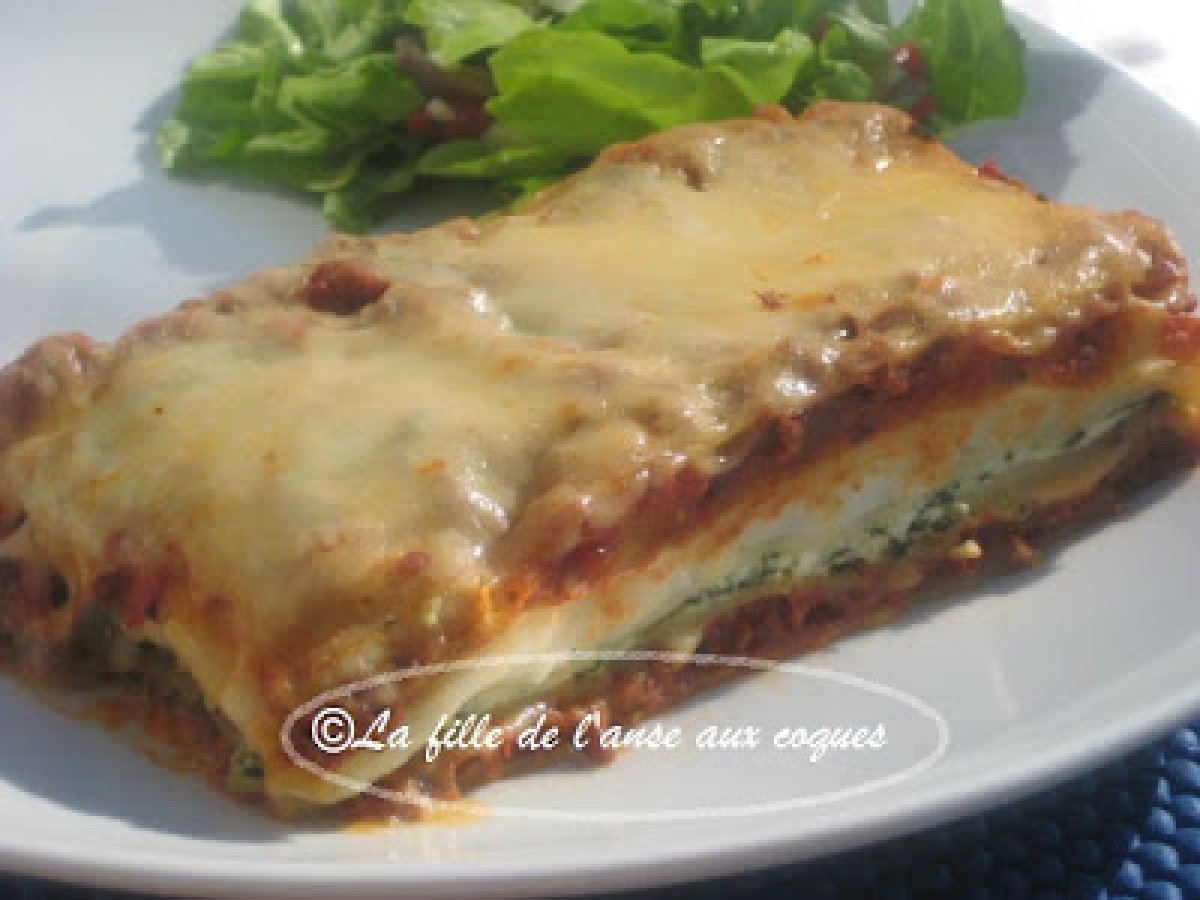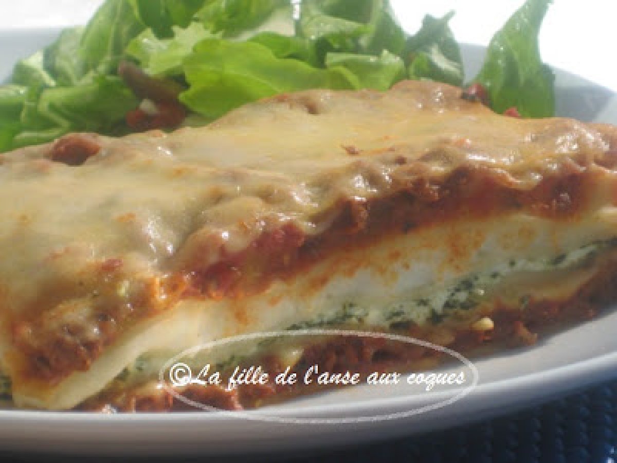 Lasagne sauce à la viande et béchamel votez maintenant PrécédentSuivant Platfacile1 h 40 m Envoyer cette recette à un ami Imprimer cette page Poser une question à l'auteur Publier votre photo de cette recette Ingrédients 4 1 tasse d'oignons hachés 2 gousses d'ail émincées ¼ tasse d'huile d'olive ½ tasse de céleri en dés 2 livres de boeuf haché extra maigre Champignons au goût 1 poivron vert, haché finement 1 boîte de 19 oz de tomates à l'étuvée 1 boîte de 19 oz de tomates à l'italienne 2 boîtes de pâte de tomate 2 cuillères thé de sucre 1 cuillère thé d'origan sel et poivre au goût ½ cuillère thé de piment broyé 2 cuillères soupe de sauce Heinz 57 Lasagne : 12 lasagnes 1 gros contenant de fromage ricotta 1 paquet d'épinards, cuits ½ tasse de parmesan Fromage mozzarella râpé ou en tranches 2 tasses de sauce béchamel Béchamel : 4 cuillères table de beurre 4 cuillères table de farine 2 tasses de lait tiède Sel poivre au goût 1 soupçon de muscade, frais râpé