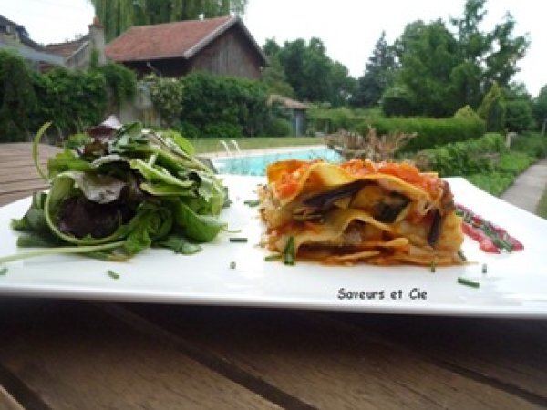 Lasagnes aux legumes du soleil votez maintenant PrécédentSuivant Platfacile45 min Envoyer cette recette à un ami Imprimer cette page Poser une question à l'auteur Publier votre photo de cette recette Ingrédients 2 Tomates bien mûres pour la sauce 2 aubergines 4 ou 5 courgettes Poivrons rouges Huile d’olive parfumée à l’ail Copeaux de parmesan Mozzarella Feuilles de lasagne précuites Origan frais basilic Sel poivre