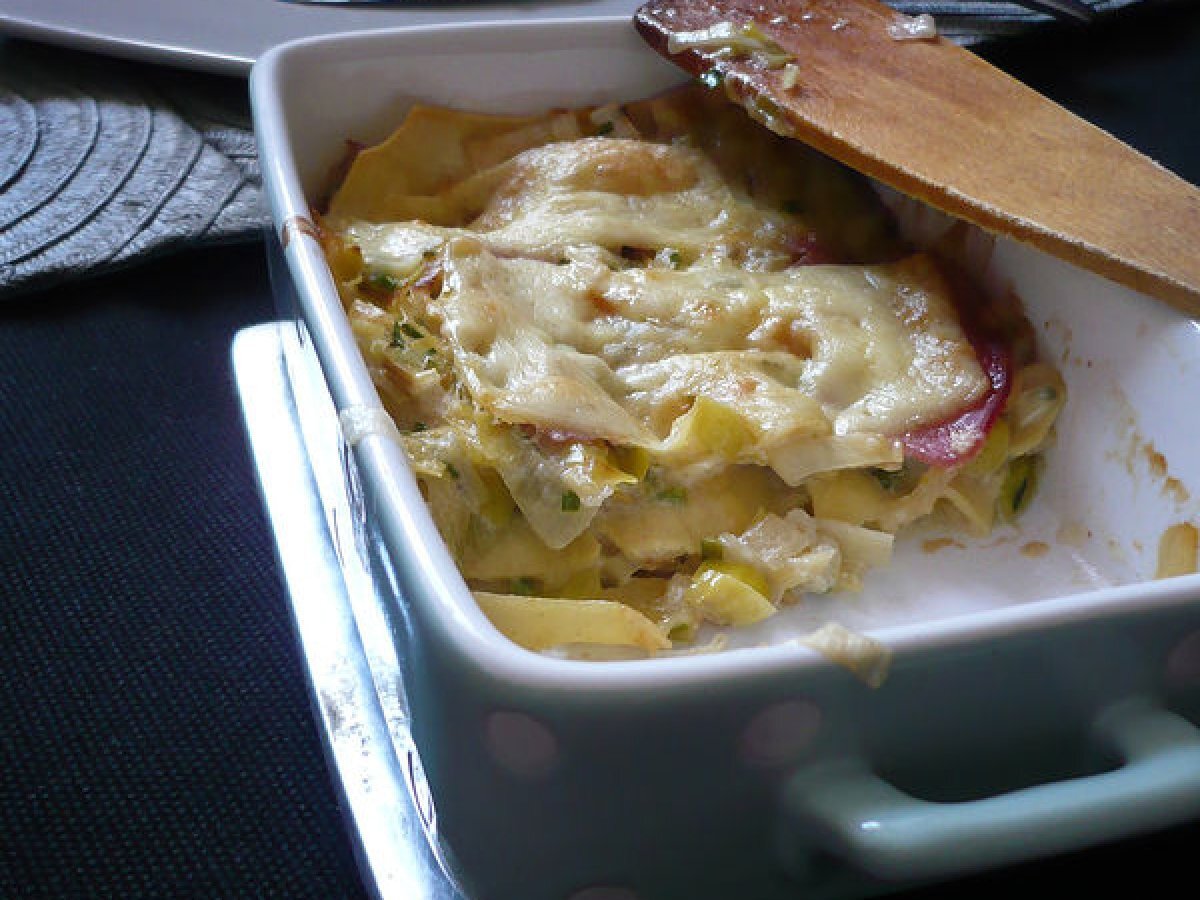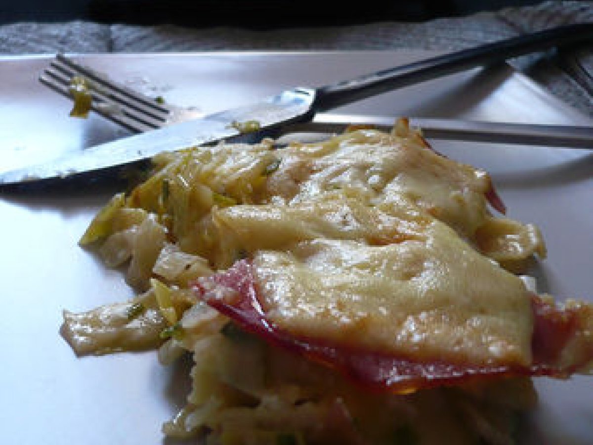 Lasagnes de poireaux, bacon et gouda PrécédentSuivant Platfacile40 min339 Kcal Envoyer cette recette à un ami Imprimer cette page Poser une question à l'auteur Publier votre photo de cette recette Des lasagnes rapide à préparer et tellement délicieuses!! Ingrédients 2 3 feuilles de lasagnes 2 poireaux 1 verre de fond de veau dilué 2 tranches de bacon 2 cuillère à soupe de mascarpone 4 tranches de gouda une pincée de cumin