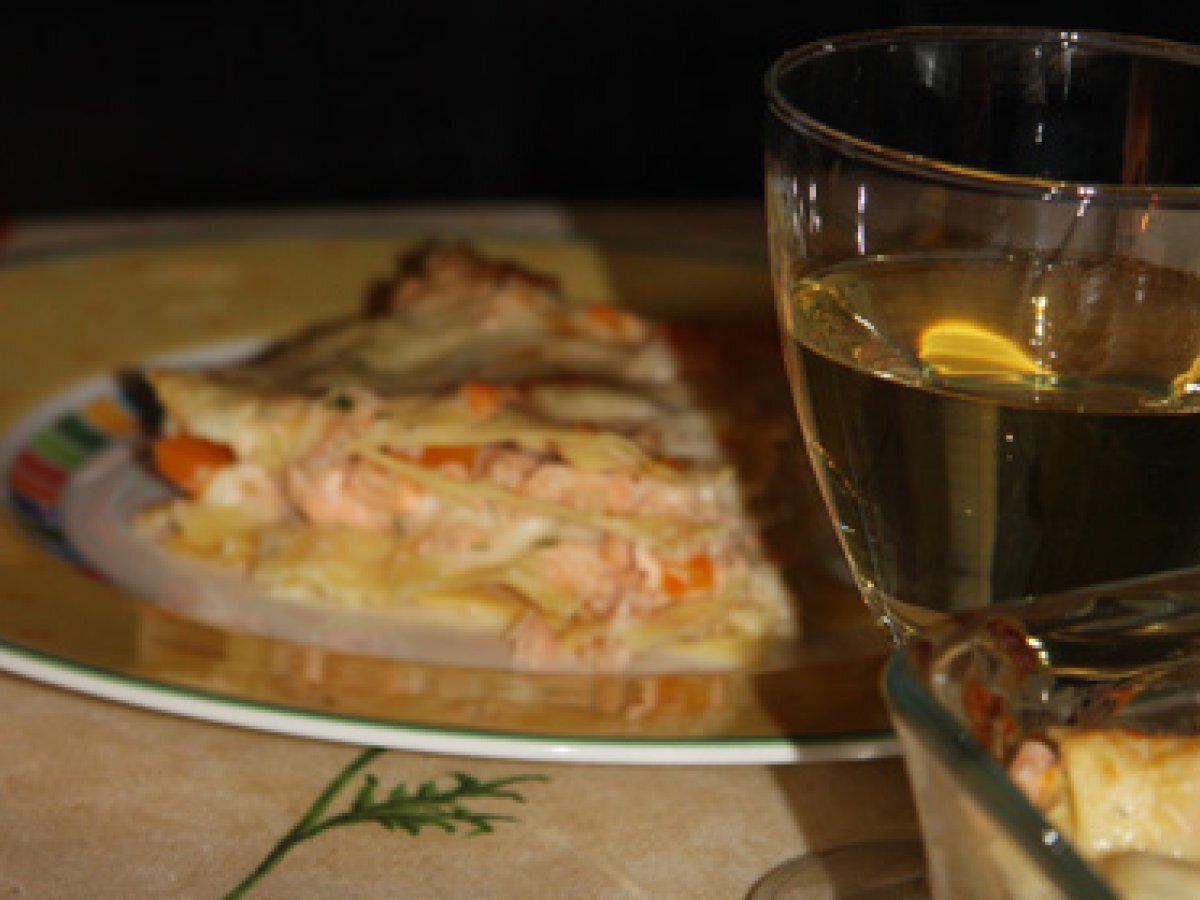 Pour rester encore un peu dans l’ambiance des fêtes mais sans trop d’excès, rien de tel qu’une lasagne au saumon frais. C’est divine, moelleuse et savoureuse grâce à la cuisson au court-bouillon…