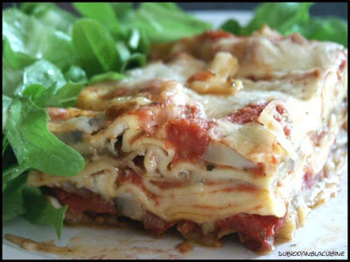 Lasagnes végétariennes aux aubergines !! votez maintenant Platfacile2 heures Envoyer cette recette à un ami Imprimer cette page Poser une question à l'auteur Publier votre photo de cette recette Ingrédients 6 2 aubergines 1 gros oignon 800 g tomates entières pelées au jus (2 boites de conserve 400 g) 1 boite de 400 g de champignons de paris sel, poivre, herbes de provence , huile d'olive gruyère 2 gousses d'ail 1 pack soja cuisine et farine ou maizena pour la béchamel
