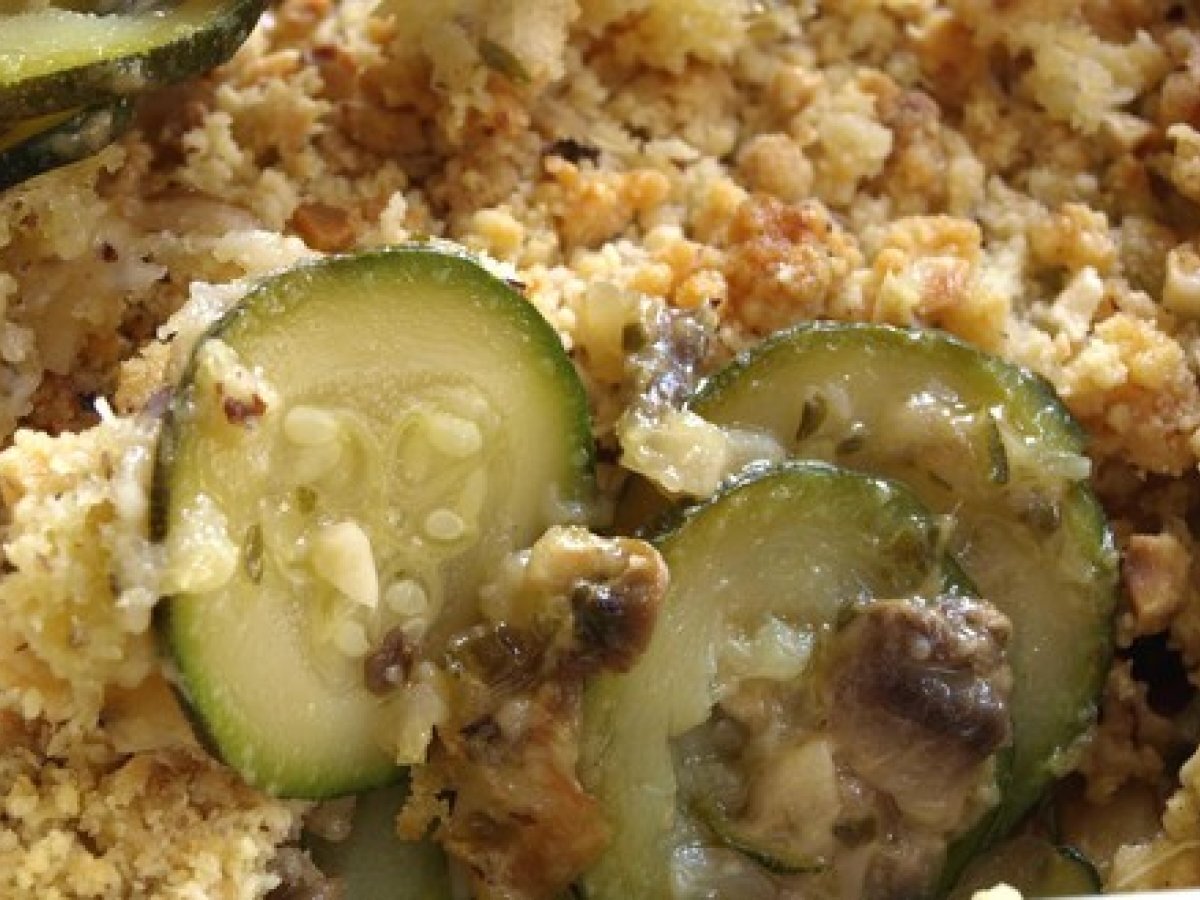Le meilleur des crumbles: courgettes, champignons, noisettes et ricotta