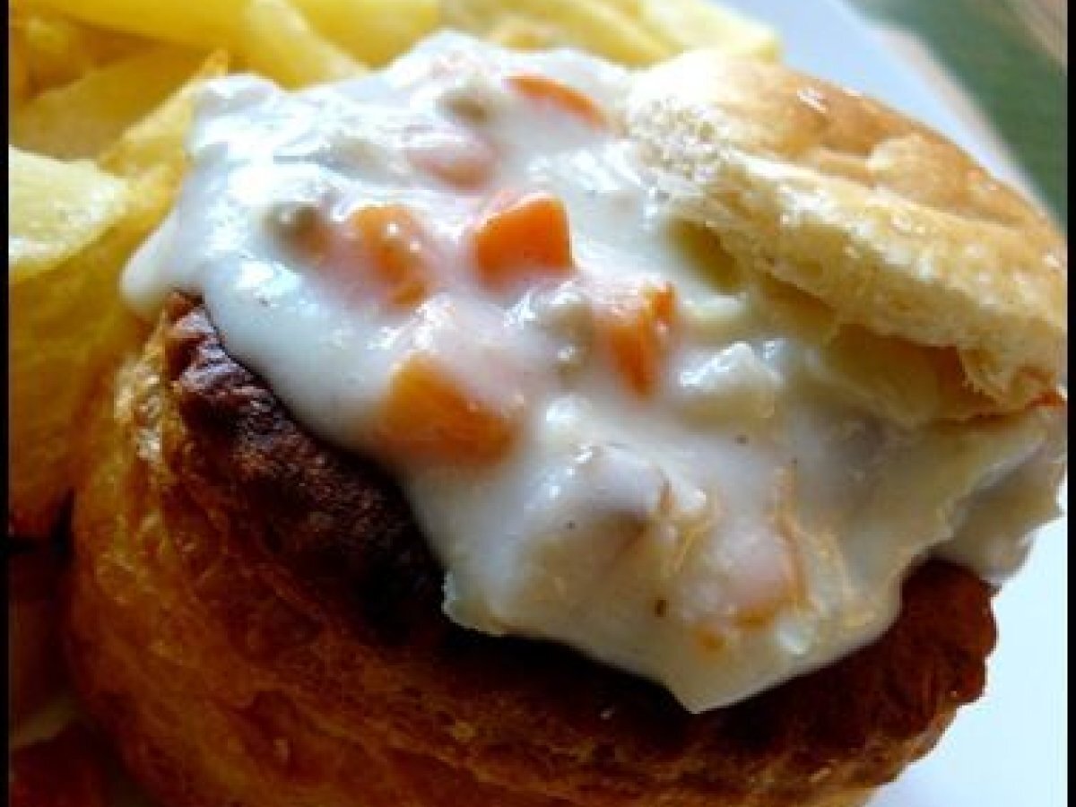 Le vol-au-vent de poulet ou la bouchée à la reine façon belge Platfacile23 min1676 Kcal Envoyer cette recette à un ami Imprimer cette page Poser une question à l'auteur Publier votre photo de cette recette Ingrédients 4 4 bouchées feuilletées 8 grosses pommes de terre 250 g de filet de poulet 100 g de carottes 150 g de poireaux 300 g de champignons Sauce béchamel : 500 ml de lait 35 g de beurre 35 g de farine Sel poivre Noix de muscade Coût estimé: 11.74Euros€ (2.93€/part)