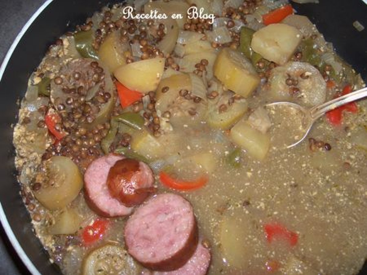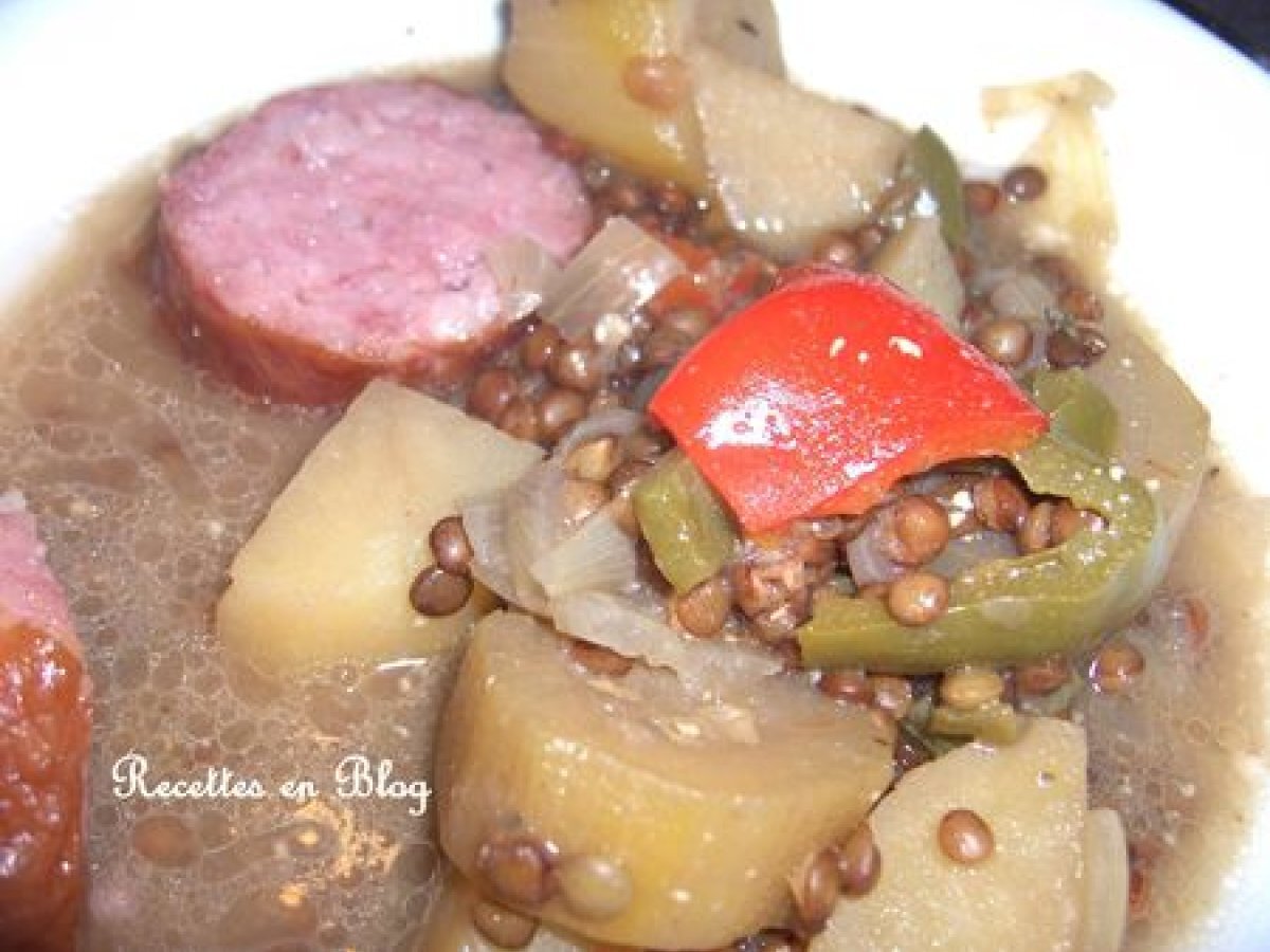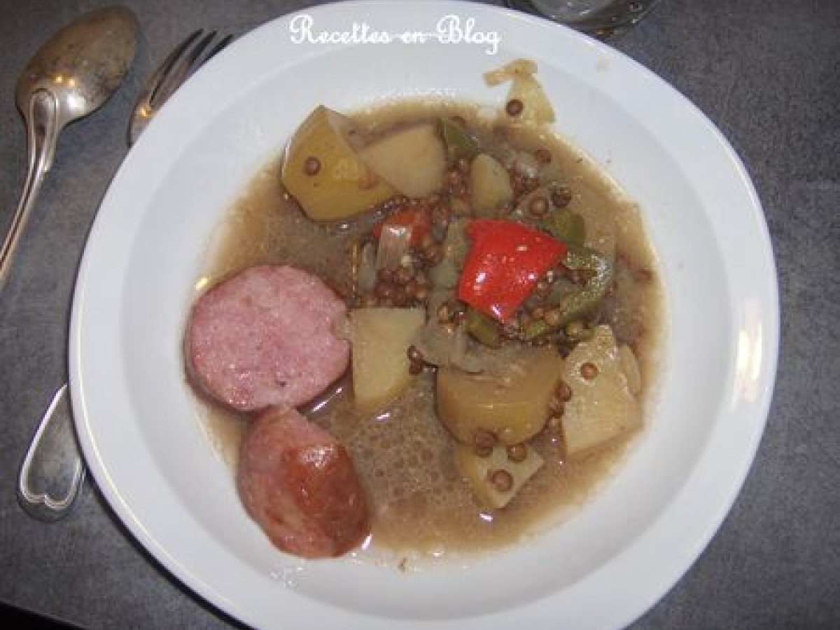 Lentilles aux deux poivrons, courgettes et saucisse de morteau PrécédentSuivant Platfacile1 heure Envoyer cette recette à un ami Imprimer cette page Poser une question à l'auteur Publier votre photo de cette recette Ingrédients 6 2 courgettes 3 pommes de terre 1 oignon 1 poivron vert 1 poivron rouge 2 saucisses de morteau 4 doses de lentilles 1 bouillon de légumes 1 litre d'eau 1 cuillère à soupe